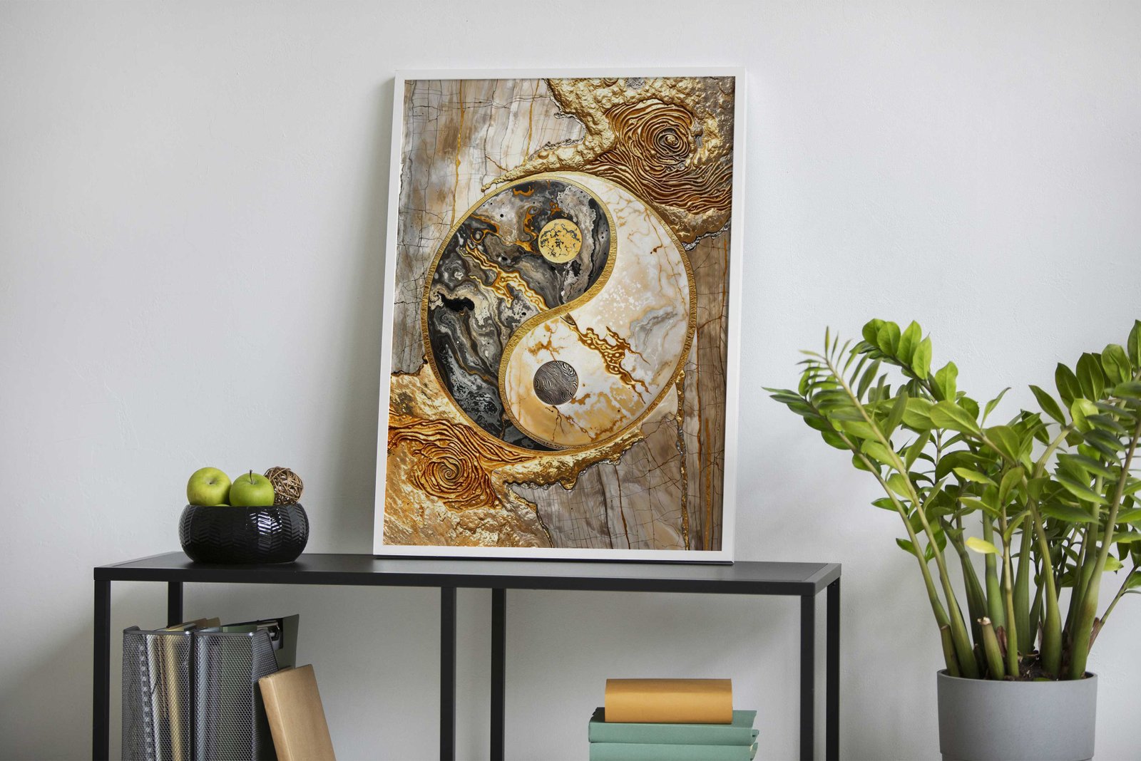Golden Yin and Yang Unity Asian Style Poster | Wall Art for Home & Office | High-Quality Print