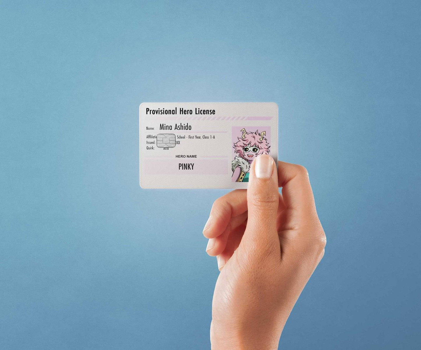 Hero License Mina Ashido Design | Credit Card Sticker | Small Chip | Credit Card Skin
