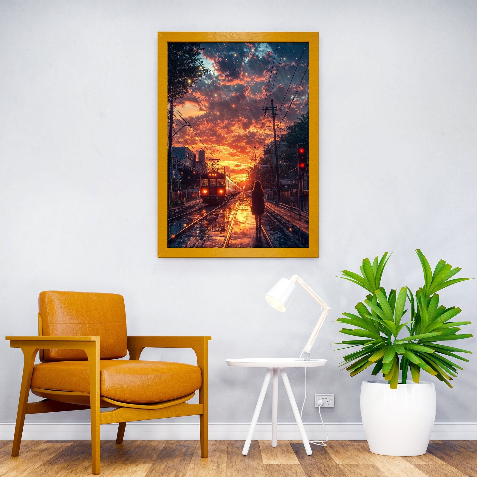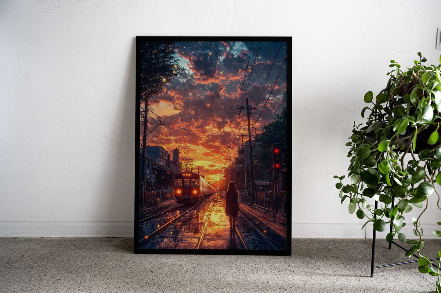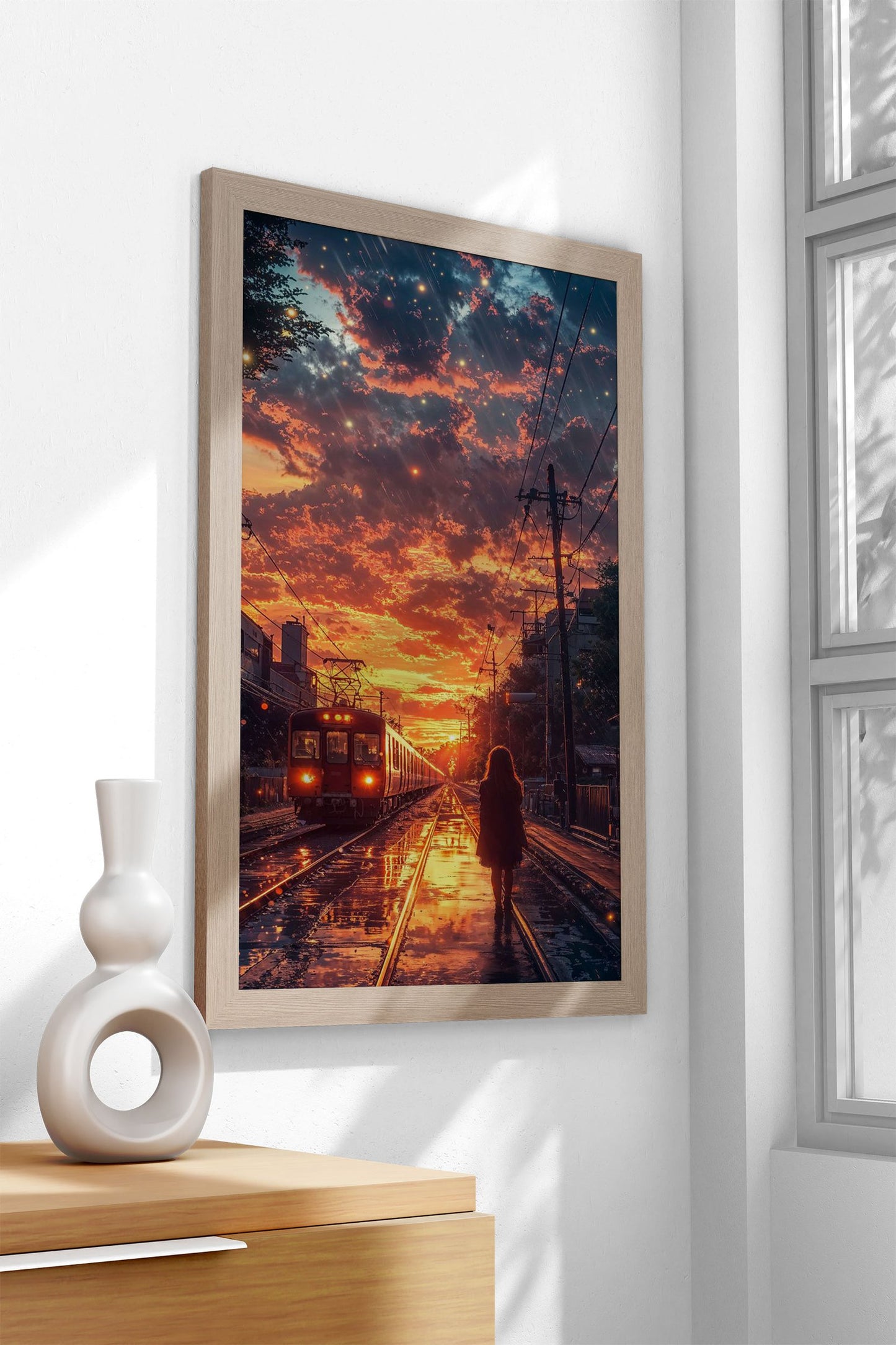 japanese train in sunset Asian Style Poster | Wall Art for Home & Office | High-Quality Print