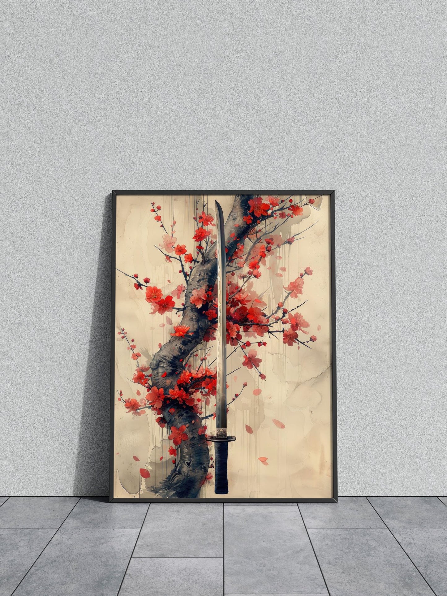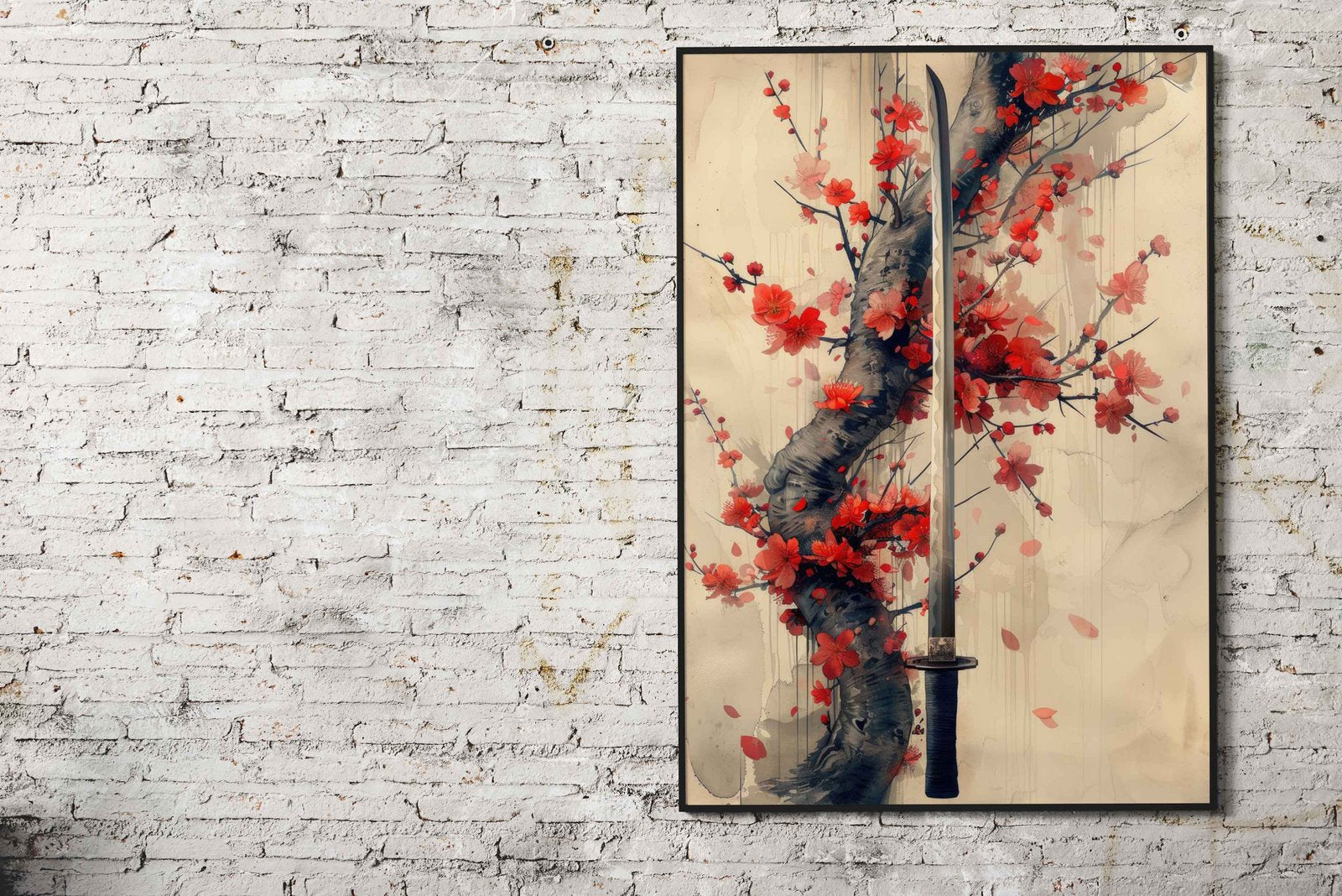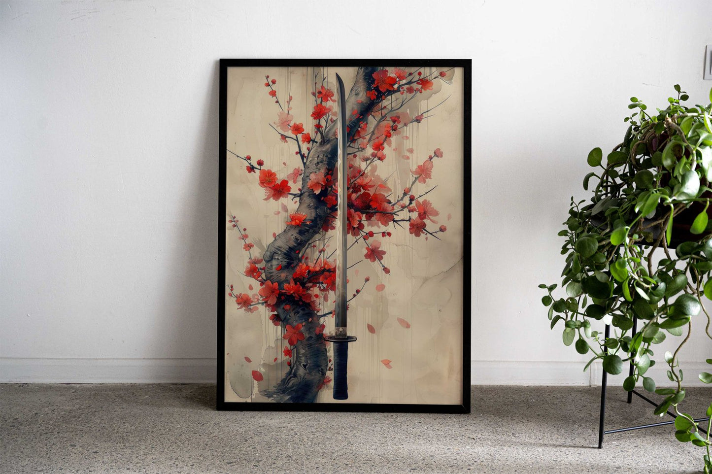 Katana Cherry Blossom Tree Asian Style Poster | Wall Art for Home & Office | High-Quality Print