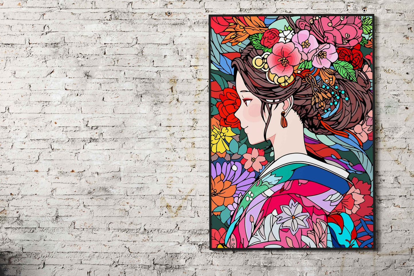 Kimono Girl Flower Hair Asian Style Poster | Wall Art for Home & Office | High-Quality Print