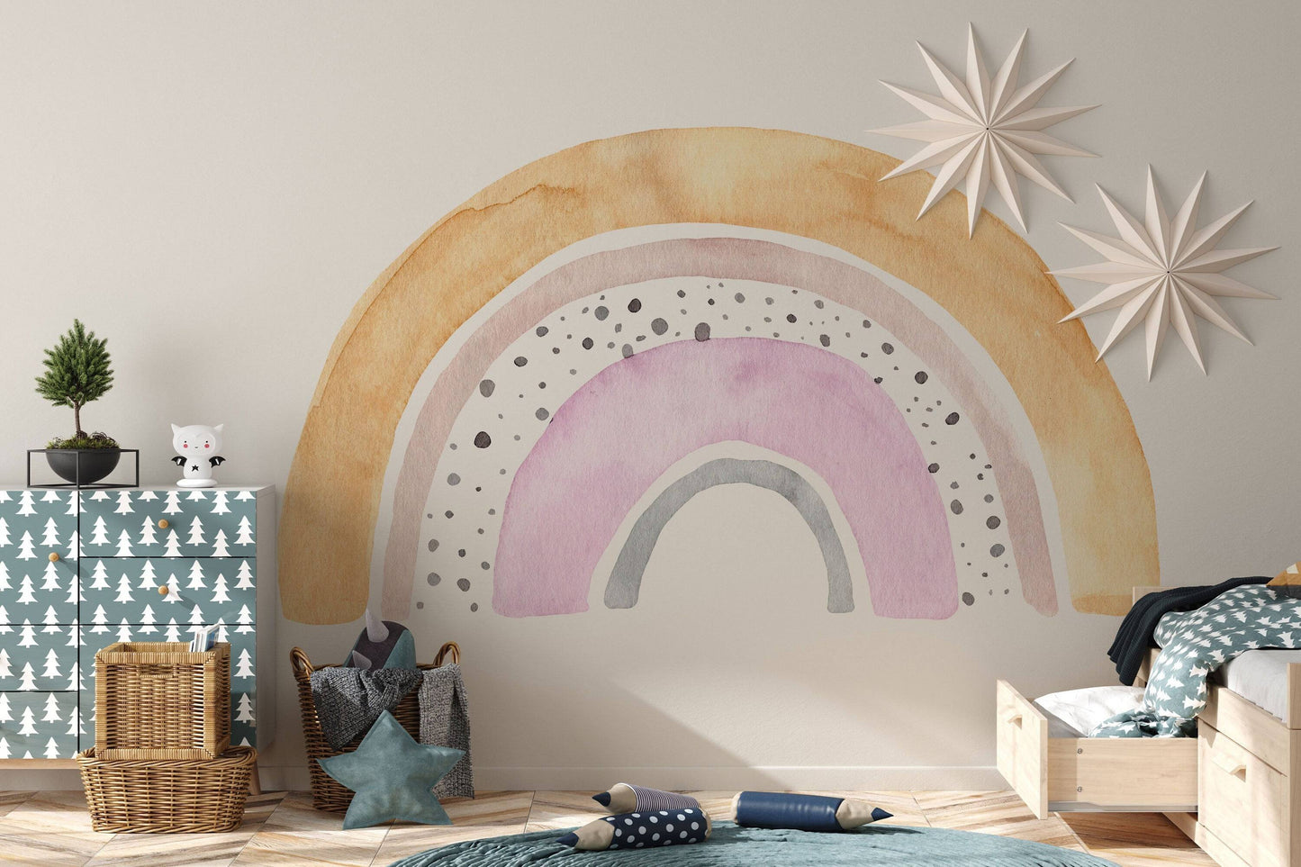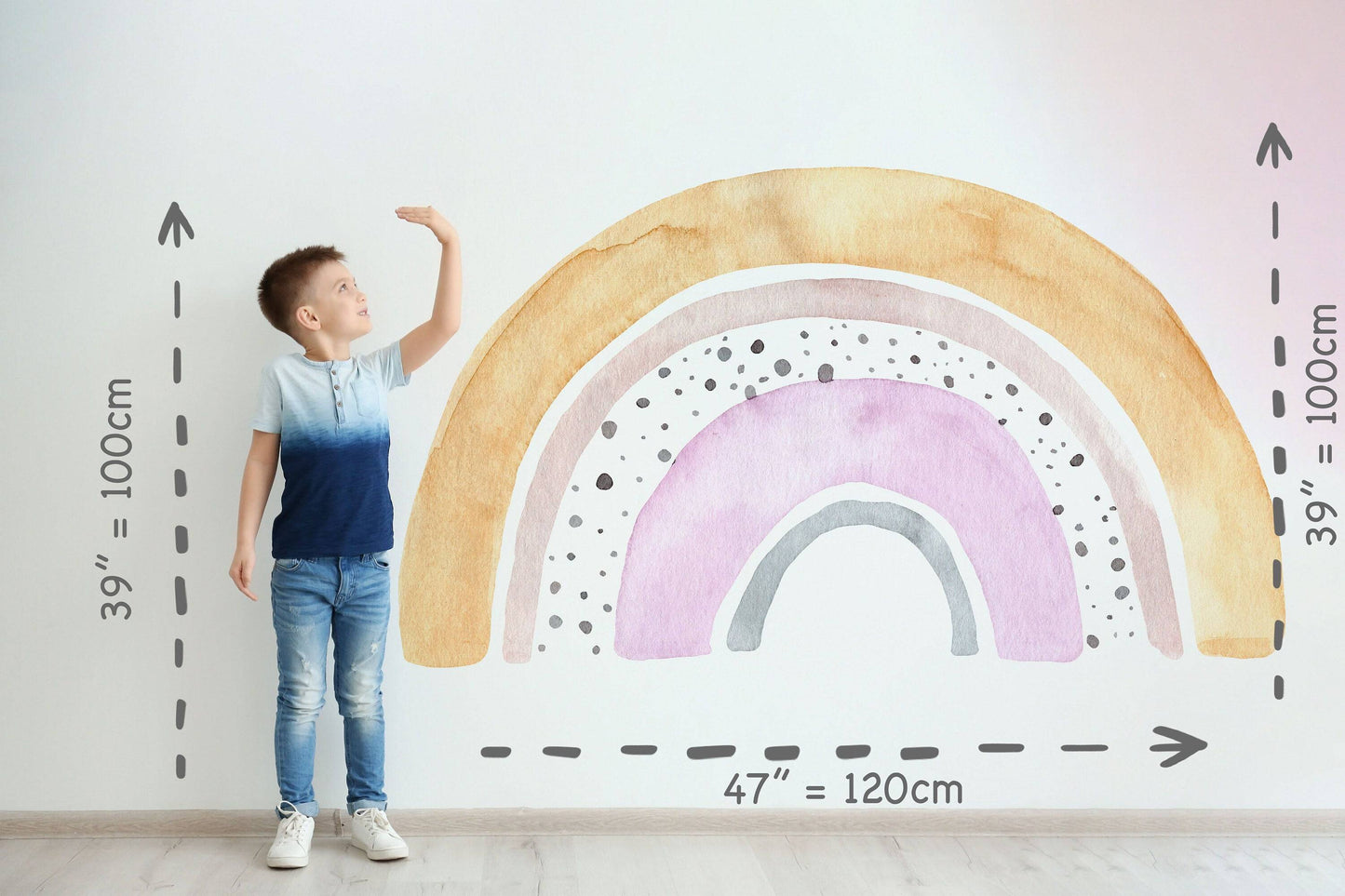 The Rainbow Decal is composed of a rainbow without a background and can be placed over a colored wall; once installed, you will have a beautiful and seamless rainbow on your wall.