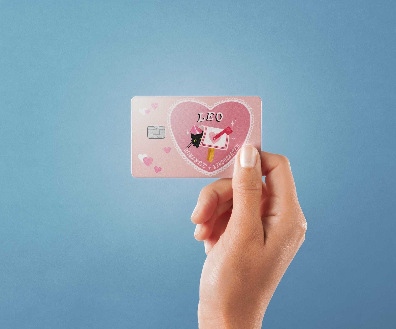 Leo Cat Love Design | Credit Card Sticker | Small Chip | Credit Card Skin