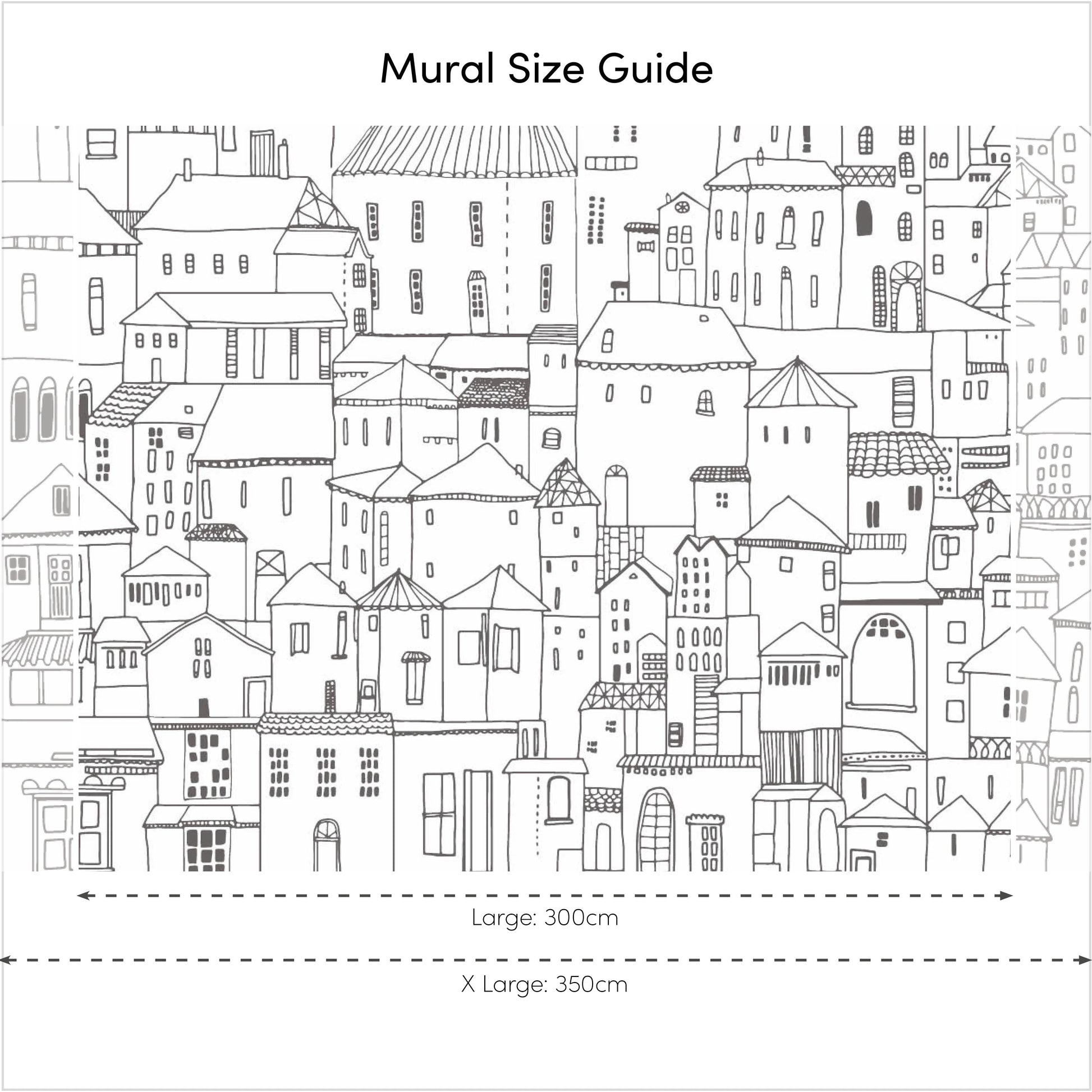 Transform your space with our Boulevard Mural, a quirky and vibrant cityscape that brings character and style to any room. The mural features a charming hand-drawn effect with intricate details, all rendered in a classic black and white palette, making it effortless to incorporate into your existing decor.