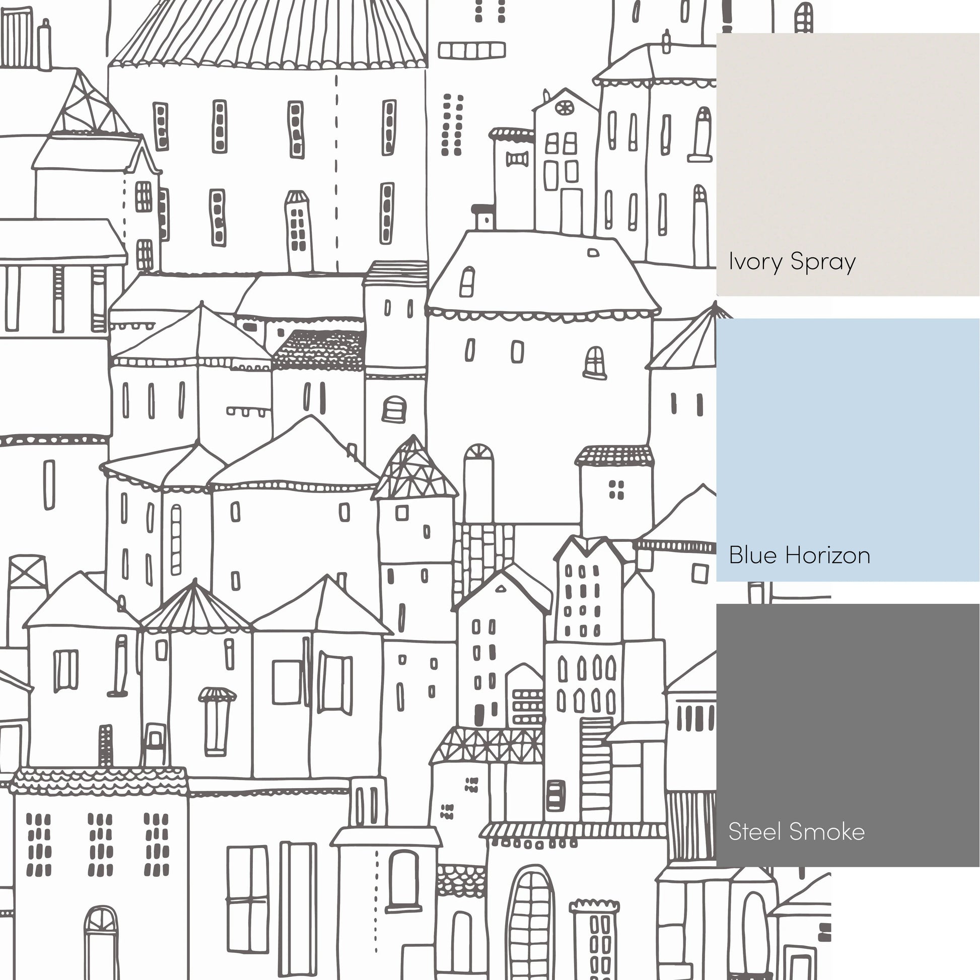 - Unique Design: Non-repeating, hand-drawn cityscape.