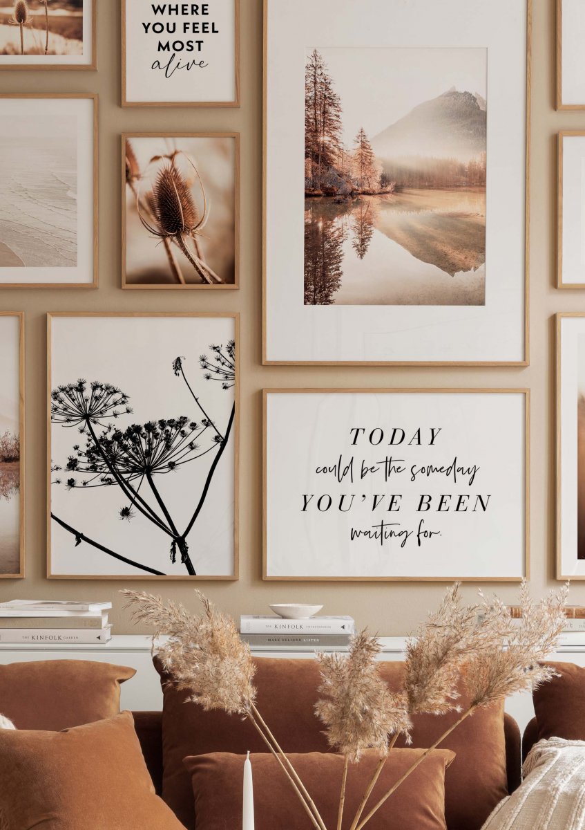 A black and white text poster with the quote Go where you feel most alive in black text on a white background. Text and quote posters are a perfect way of getting your daily dose of motivation – put it next to your vanity or hallway mirror to make sure you never miss out on some well-needed inspiration.