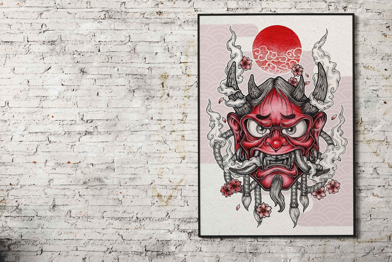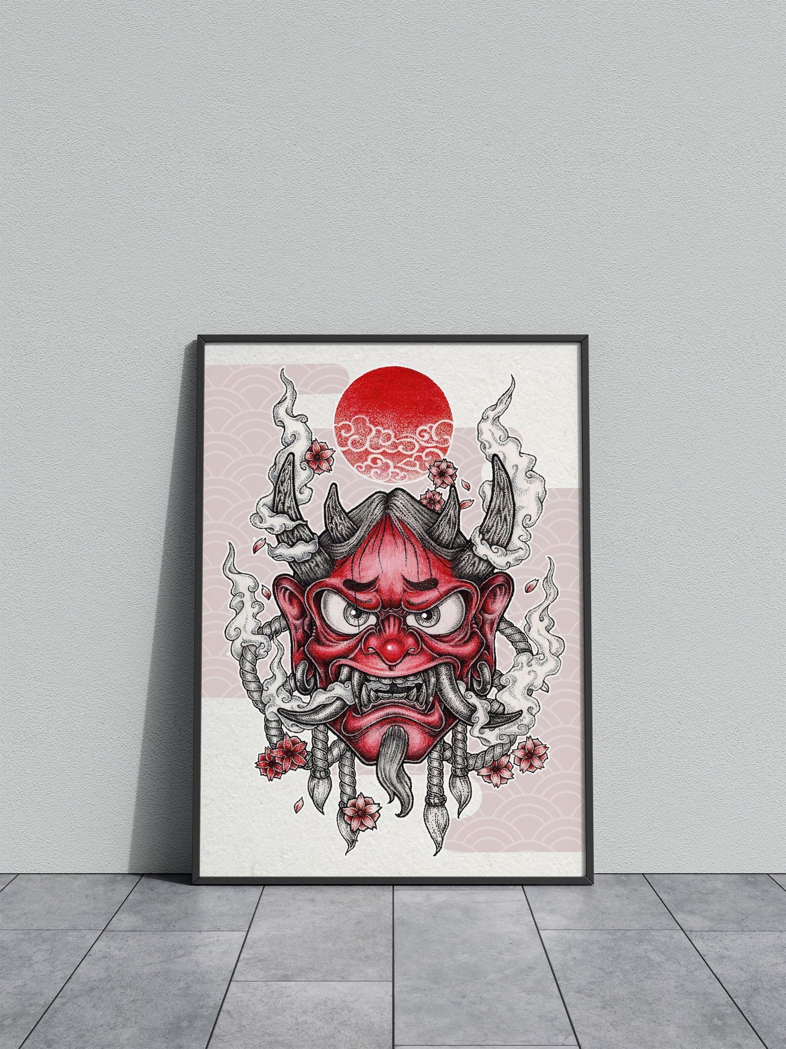 Oni Mask Illustration Asian Style Poster | Wall Art for Home & Office | High-Quality Print