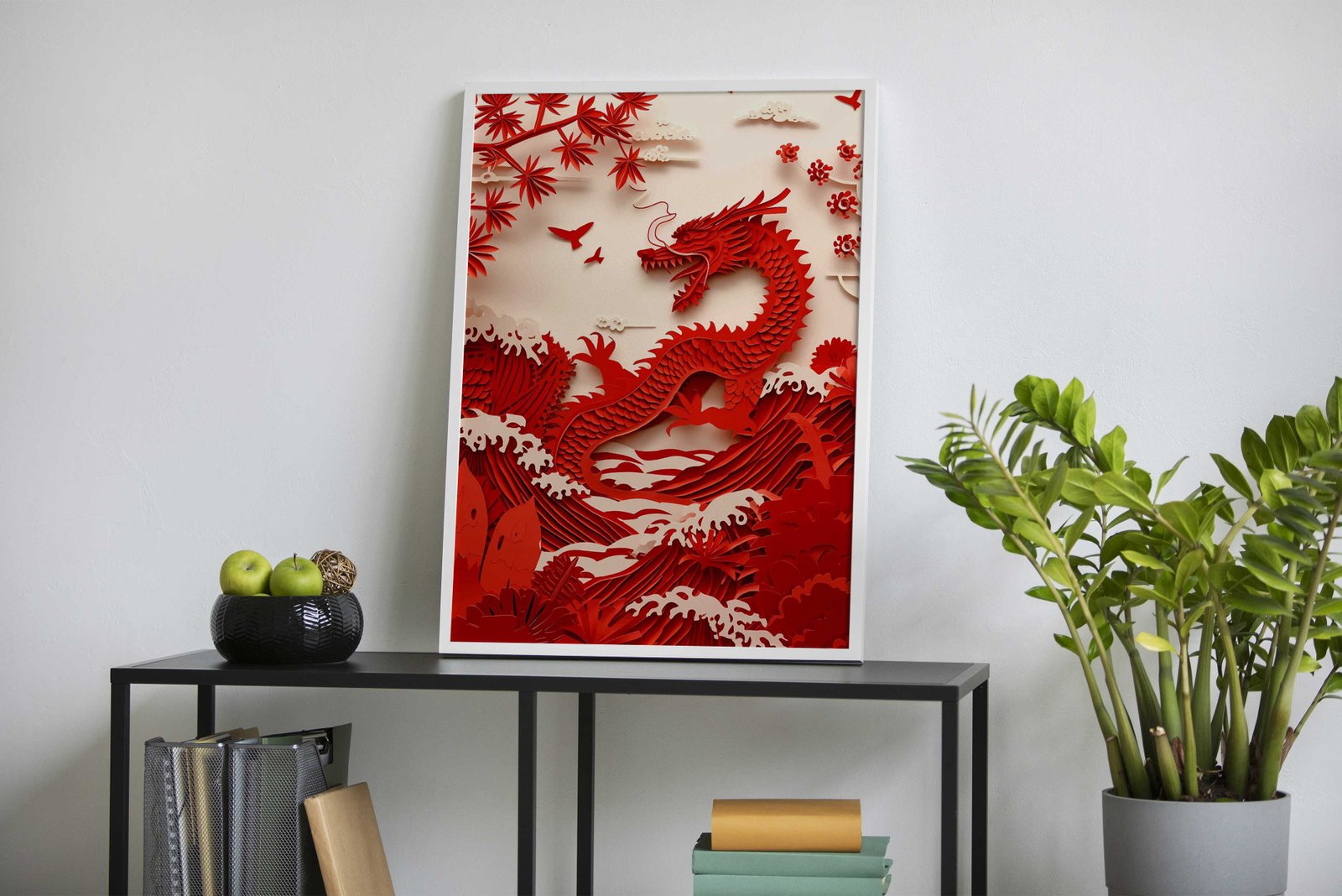 Origami red dragon Asian Style Poster | Wall A rt for Home & Office | High-Quality Print
