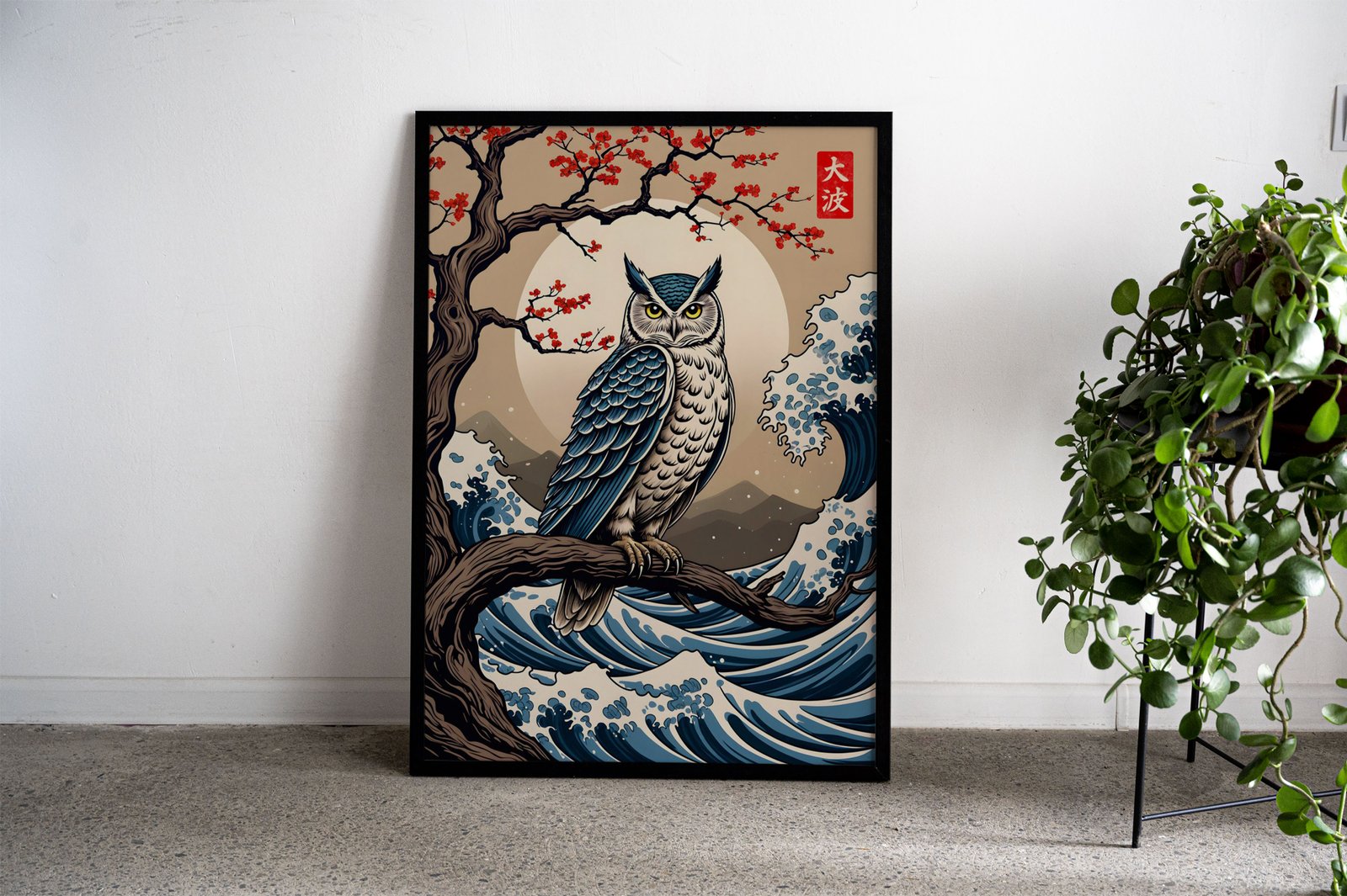 Owl Great Wave Asian Style Poster | Wall Art f or Home & Office | High-Quality Print