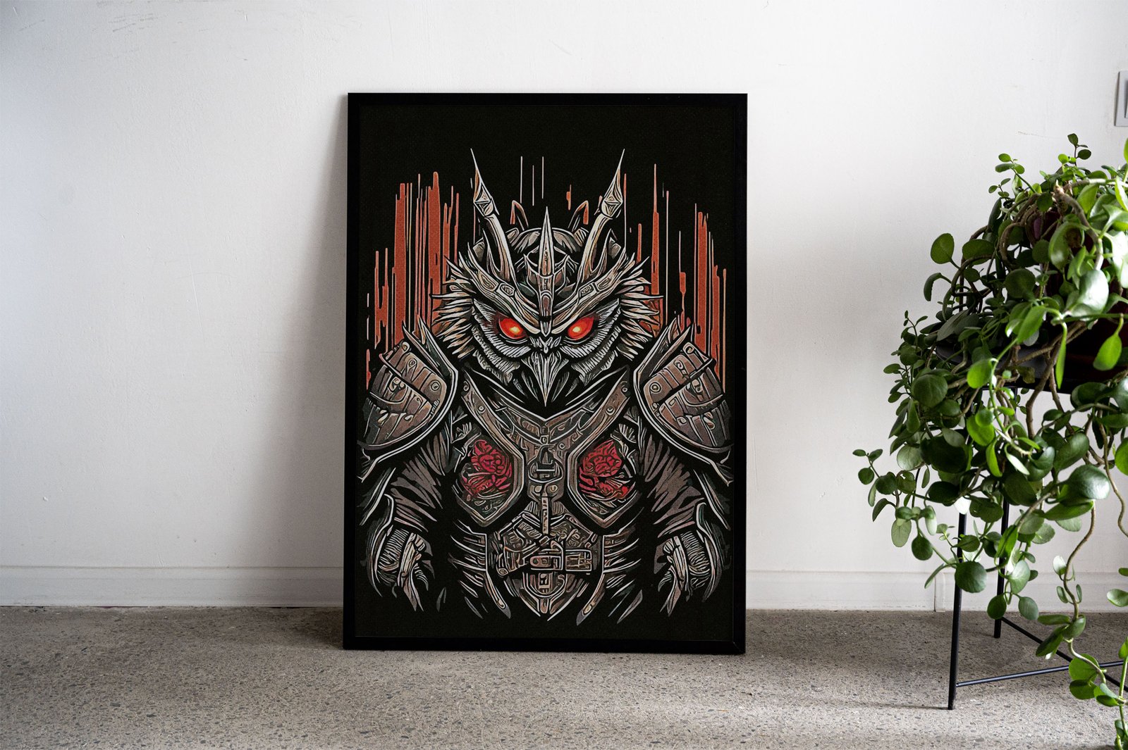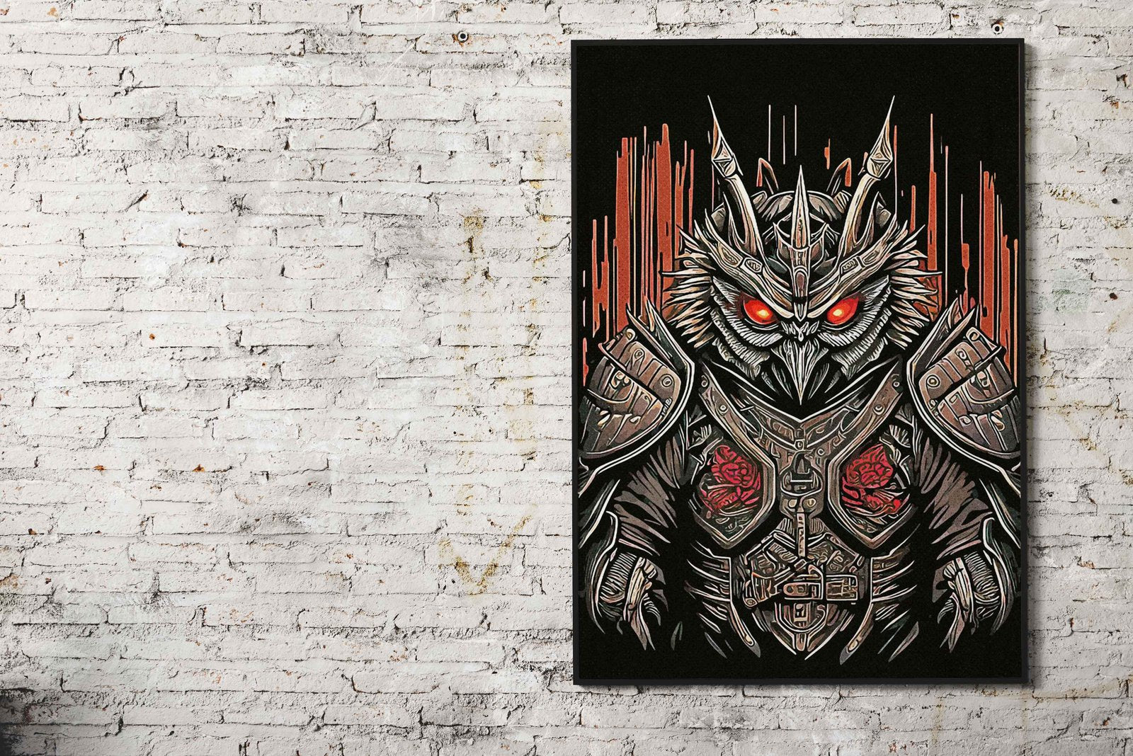 Owl Samurai Drawing Asian Style Poster | Wall Art for Home & Office | High-Quality Print