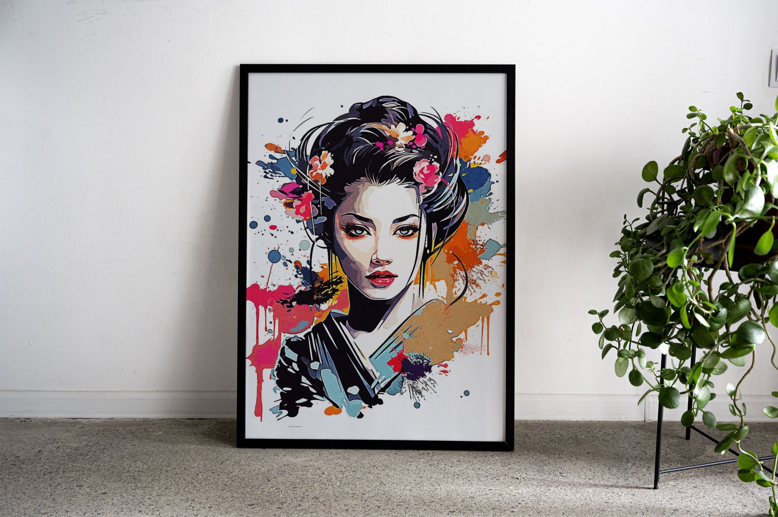 Painting Geisha Asian Style Poster | Wall Art fo r Home & Office | High-Quality Print