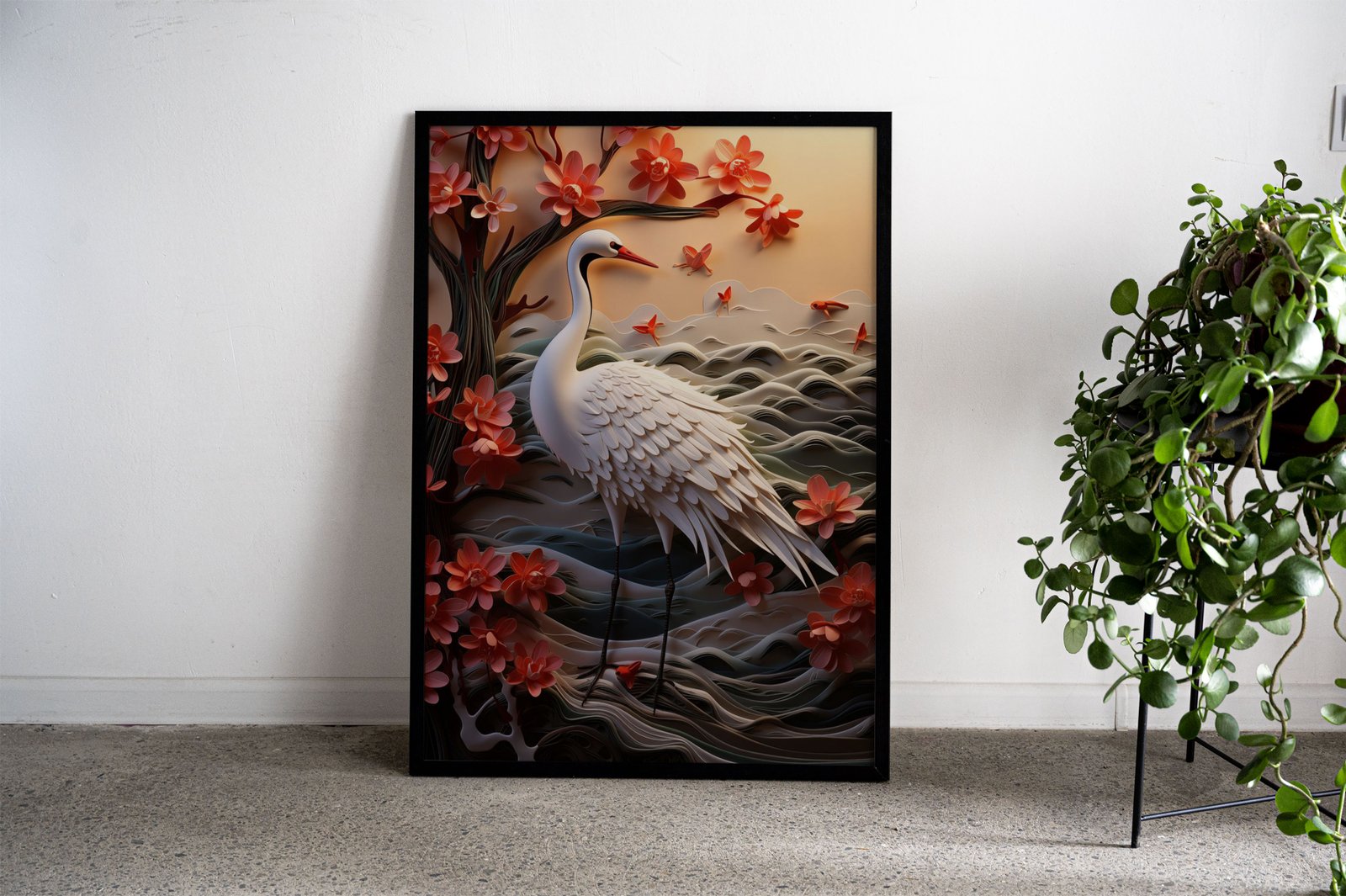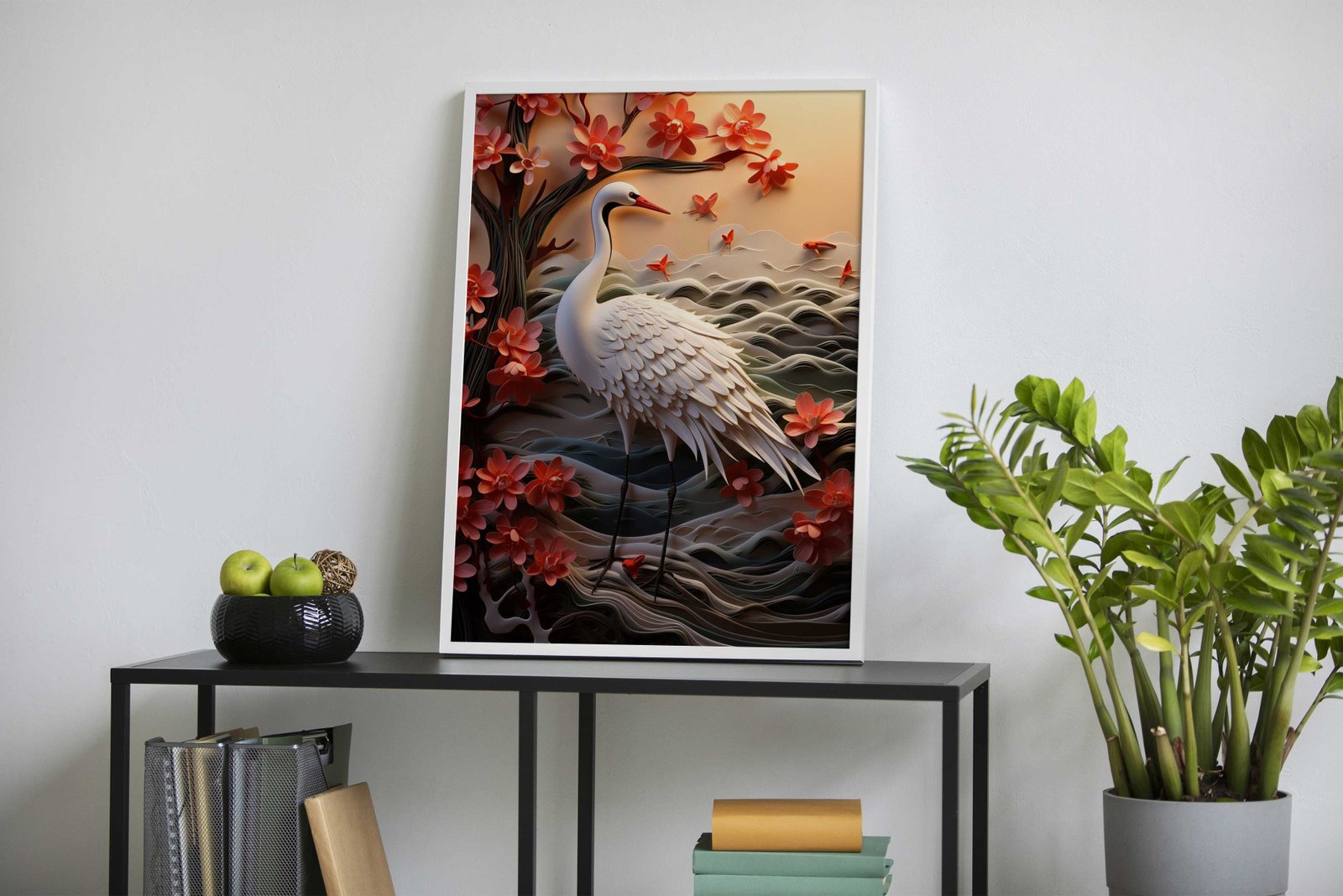 Paper Crane and Flowers Asian Style Poster | Wall Art for Home & Office | High-Quality Print