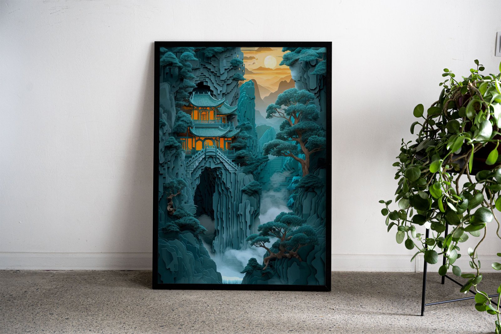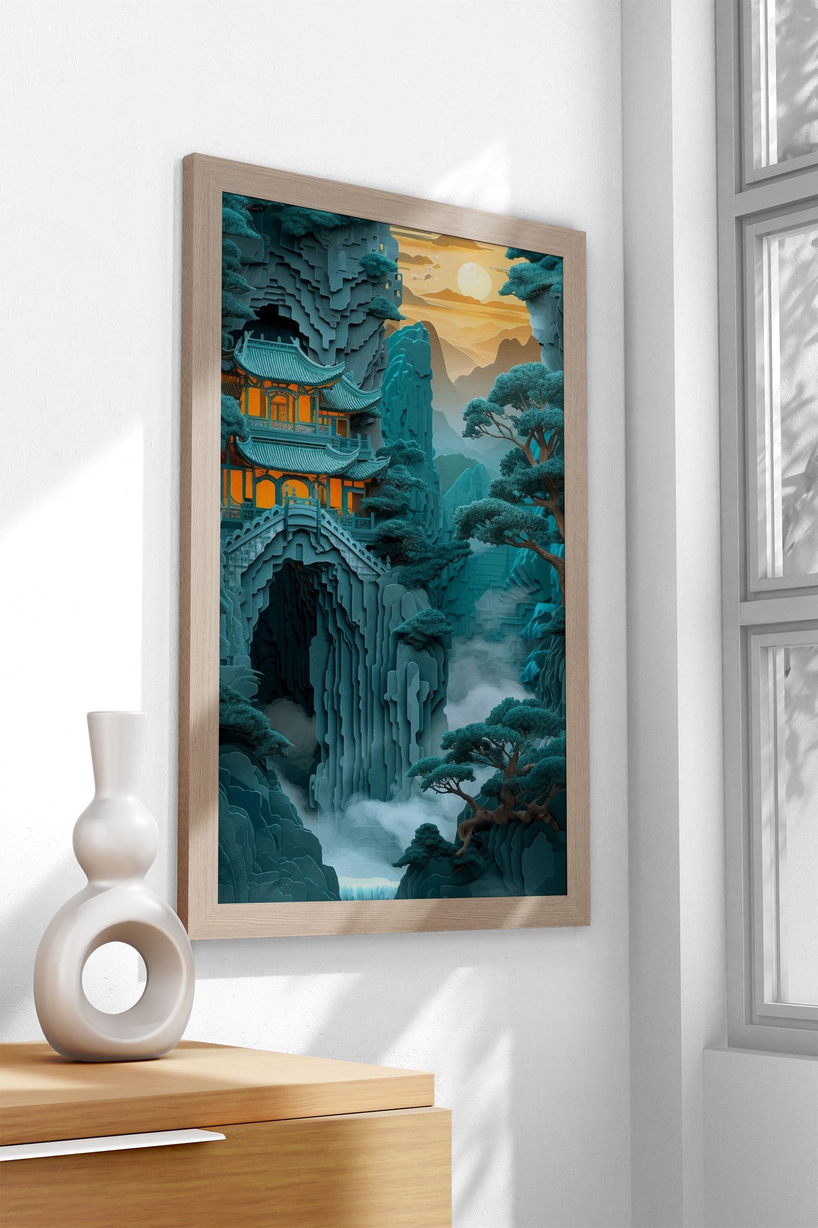 papercut Chinese temple Asian Style Poster | Wall Art for Home & Office | High-Quality Print