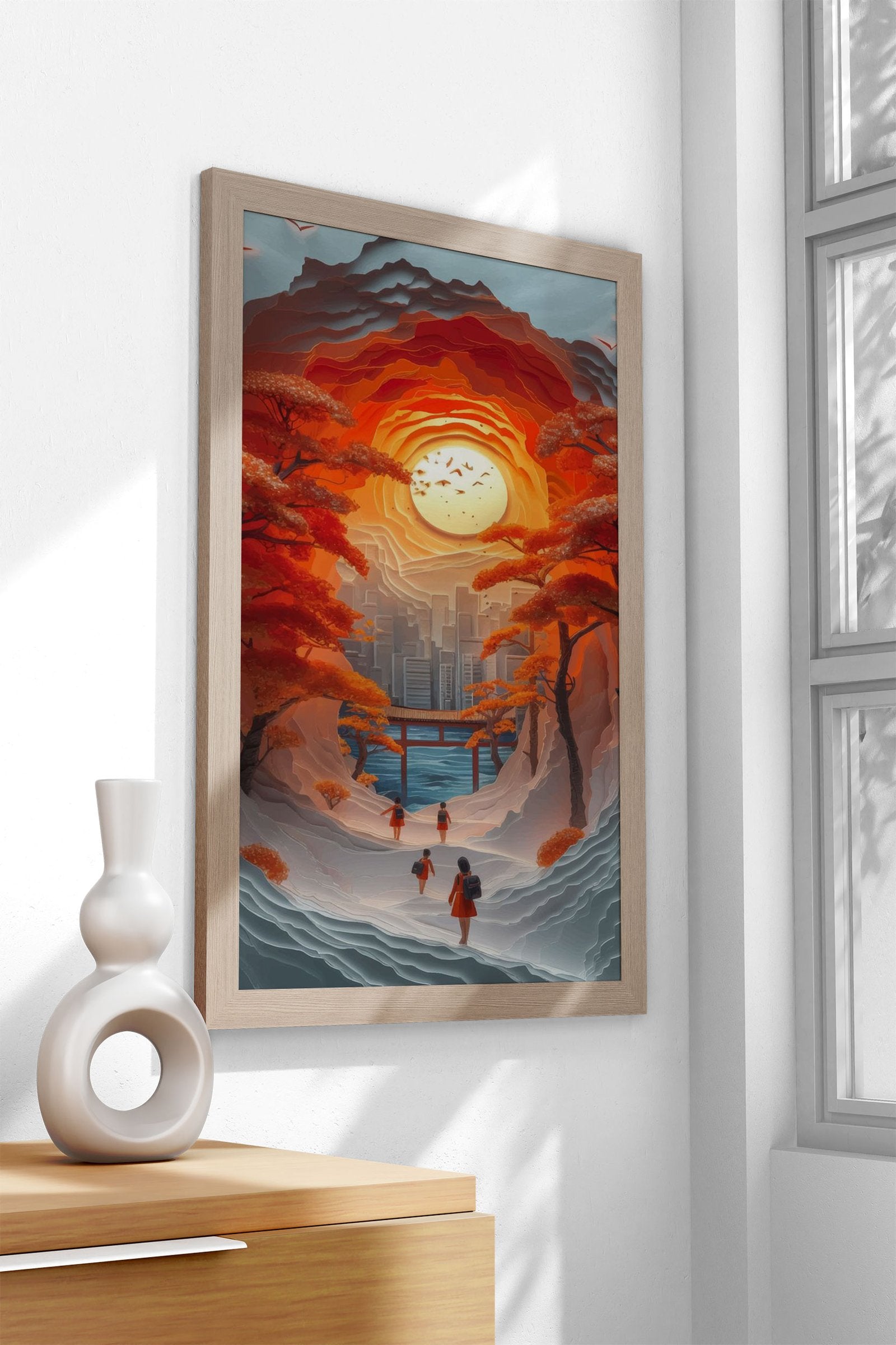 papercut sunset art Asian Style Poster | Wall A rt for Home & Office | High-Quality Print