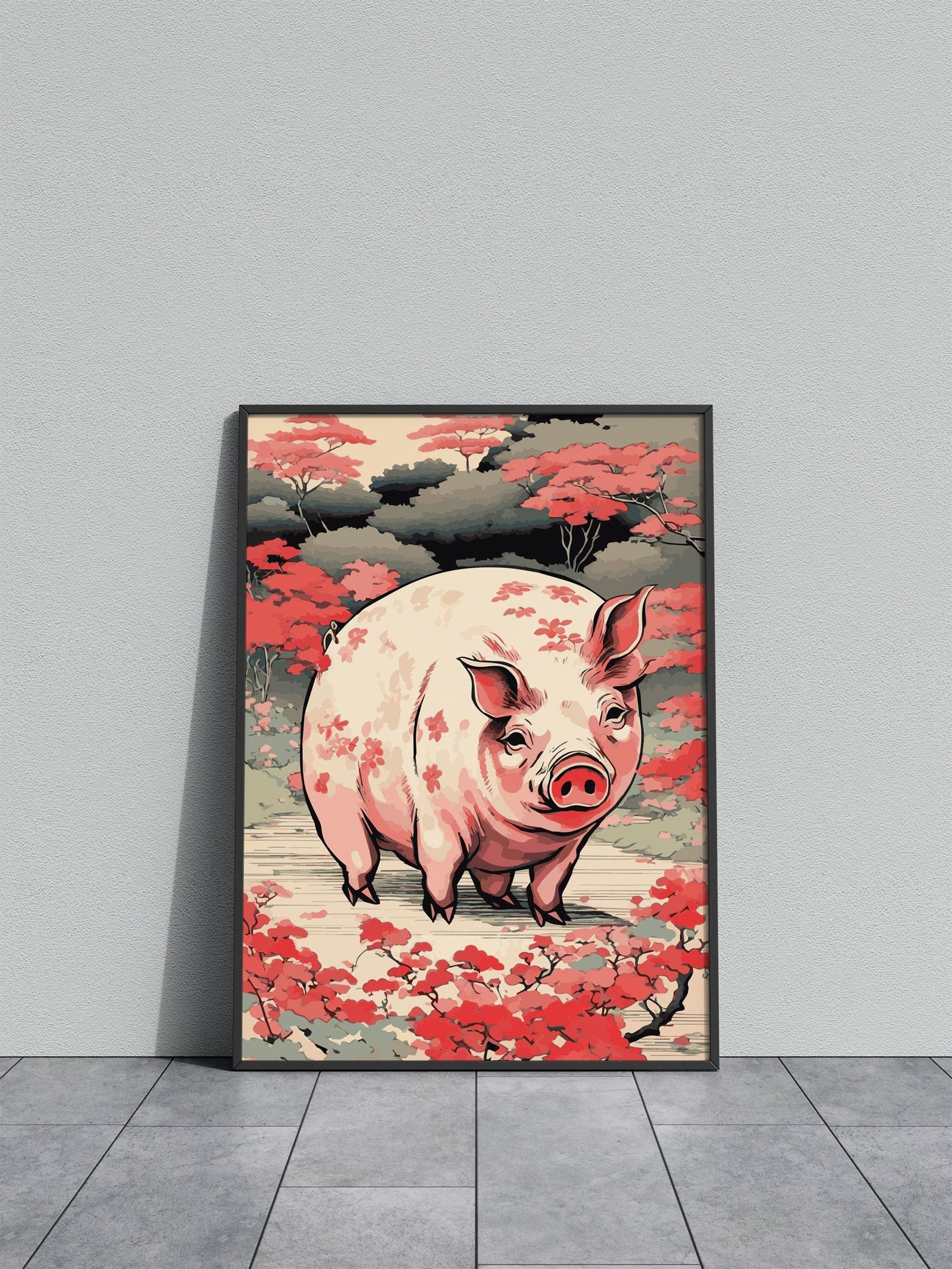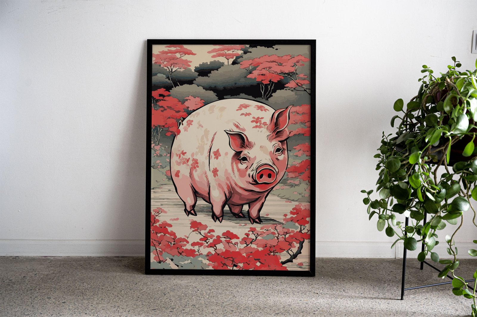 Pig Japanese Chinese 6 Asian Style Poster | W all Art for Home & Office | High-Quality Print