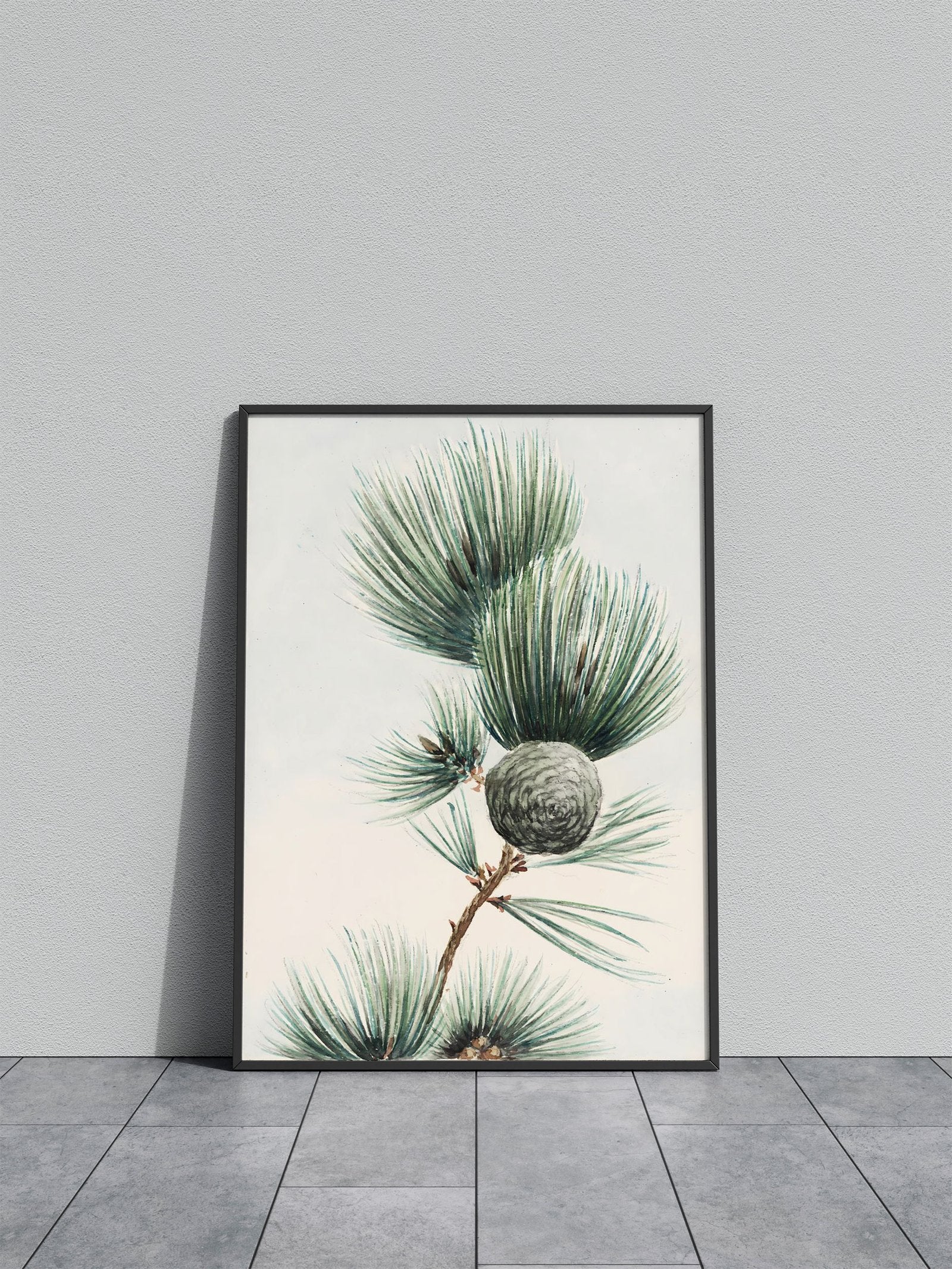 Pine Branch Watercolor Asian Style Poster | W all Art for Home & Office | High-Quality Print