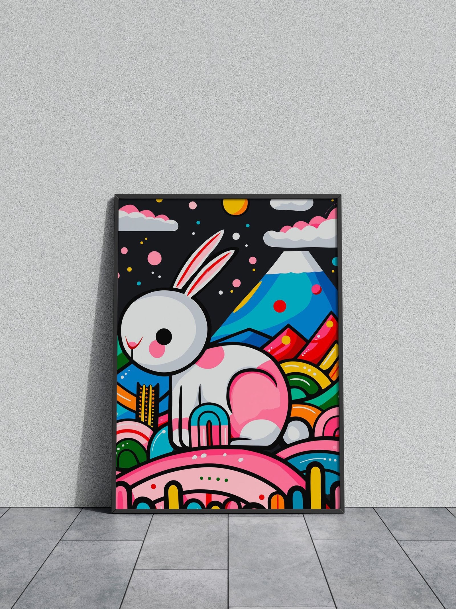Pink Blue Rabbit Japanese Asian Style Poster | Wall Art for Home & Office | High-Quality Print