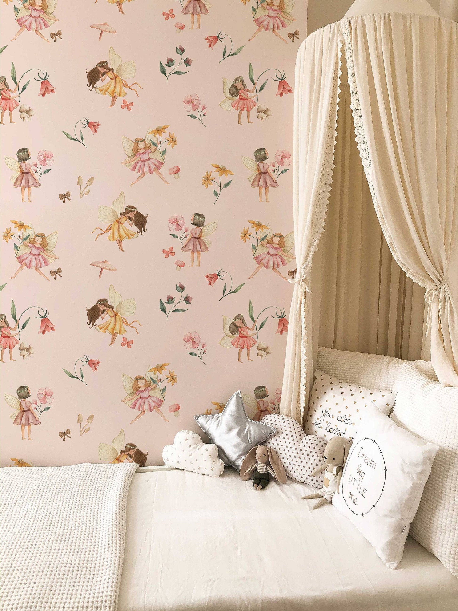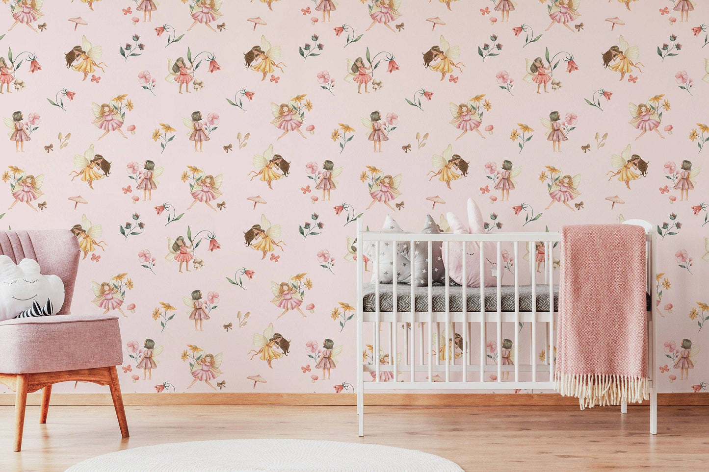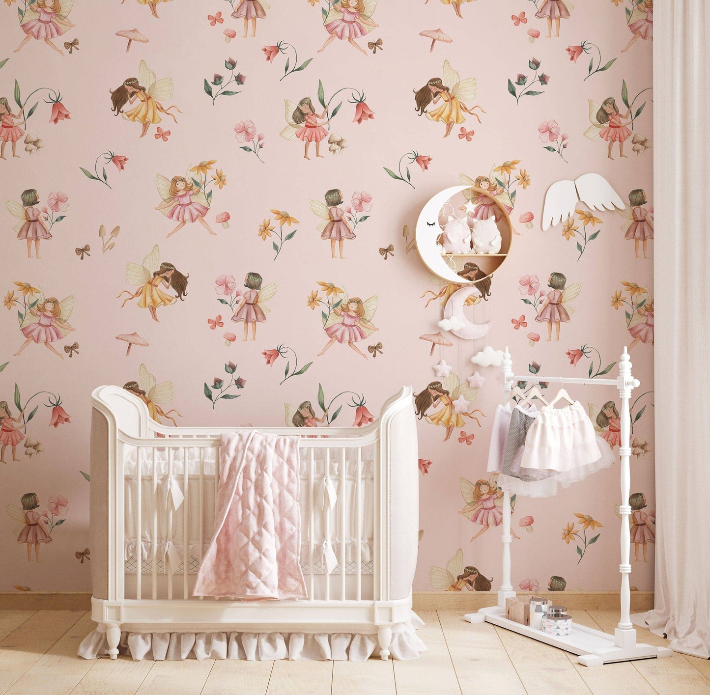 ◯ Adorable Nursery Decor: Create a baby girl's nursery that's as unique as she is. My pink fairy wallpaper is an elegant and timeless choice.