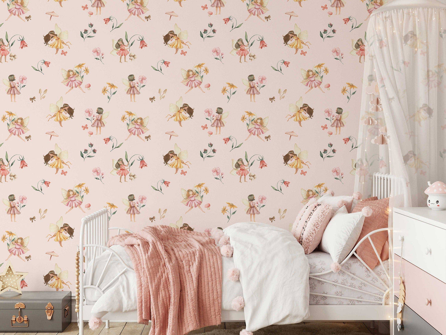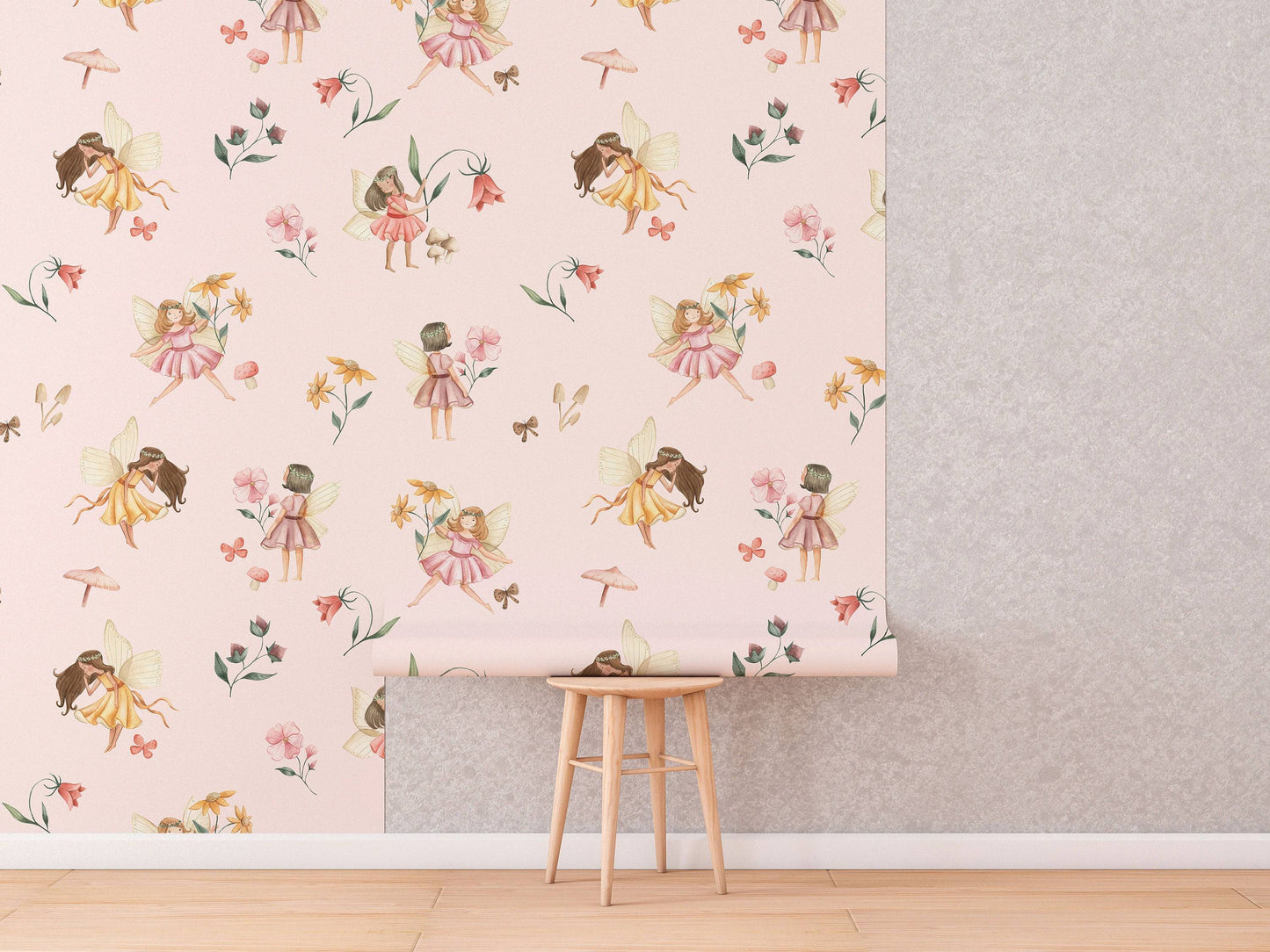 ◯ Embrace the magic of childhood with this Pink Fairy Removable Wallpaper. It's not just a decoration; it's a storytelling canvas for your little one's dreams.