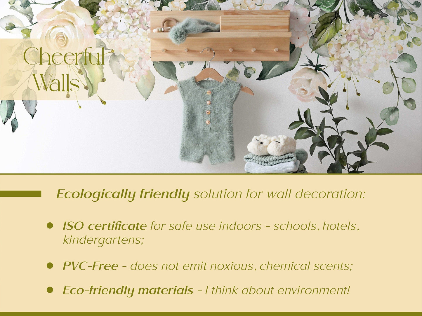 ◯ Safety and Quality: Crafted from high-quality vinyl, my wallpaper is not only beautiful but also safe for your little one's nursery.