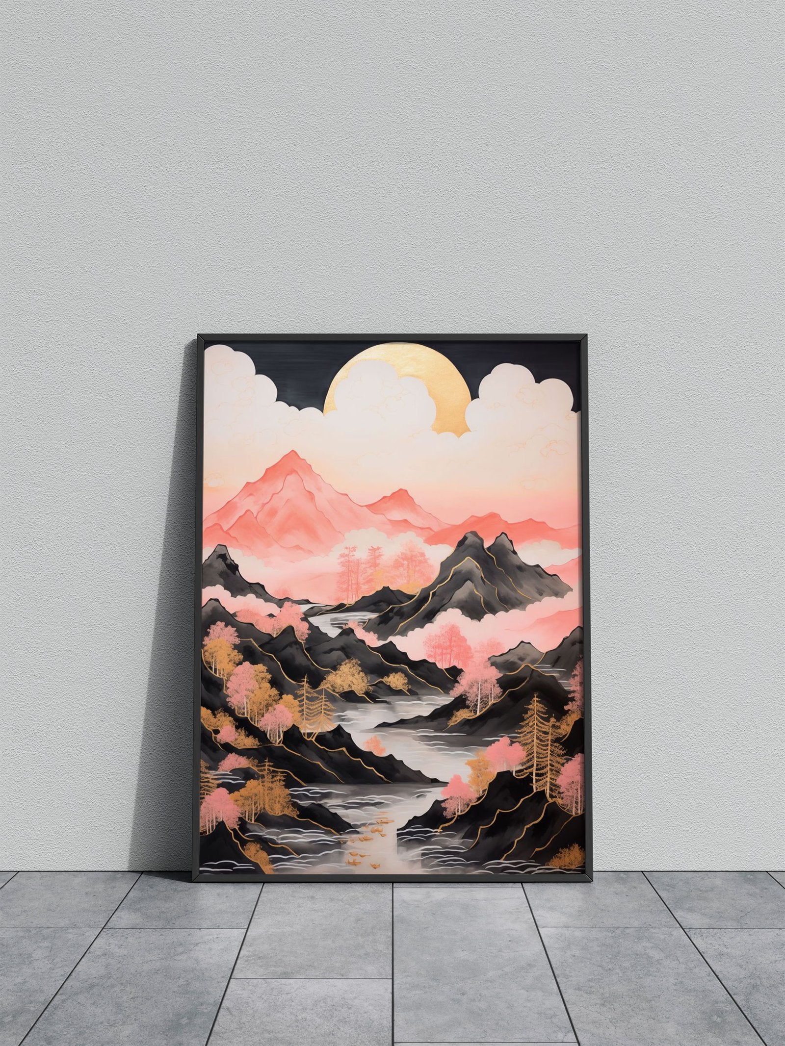 Pink Mountains Asian Style Poster | Wall Art fo r Home & Office | High-Quality Print