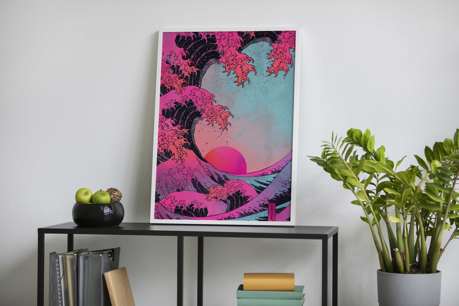Pink Wave Sunset Asian Style Poster | Wall Art for Home & Office | High-Quality Print
