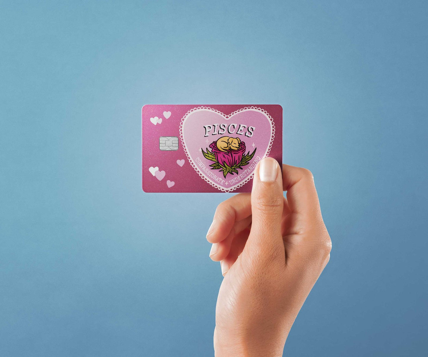 Pisces Puppy Love Design | Credit Card Sticker | Small Chip | Credit Card Skin