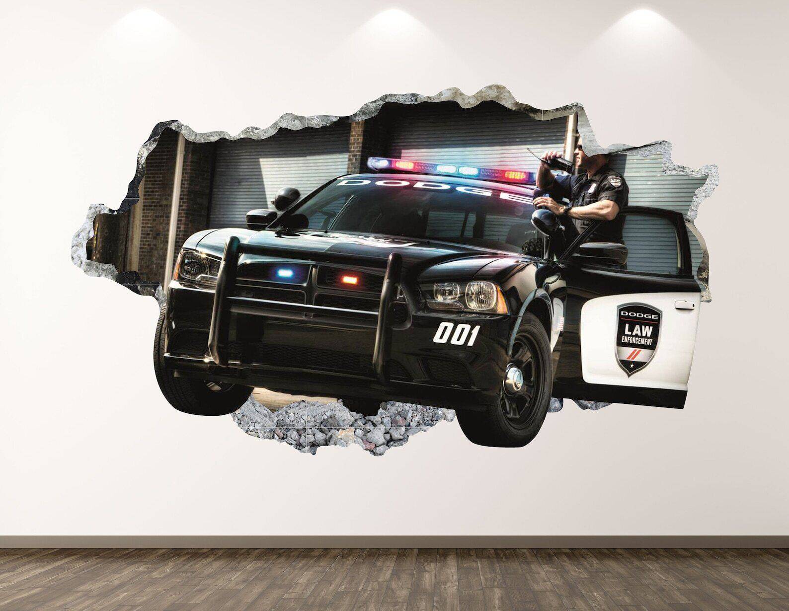 Police Car Wall Decal - Sport 3D Smashed Wall Art Sticker Kids Decor Vinyl