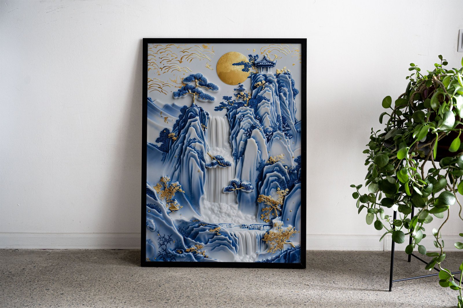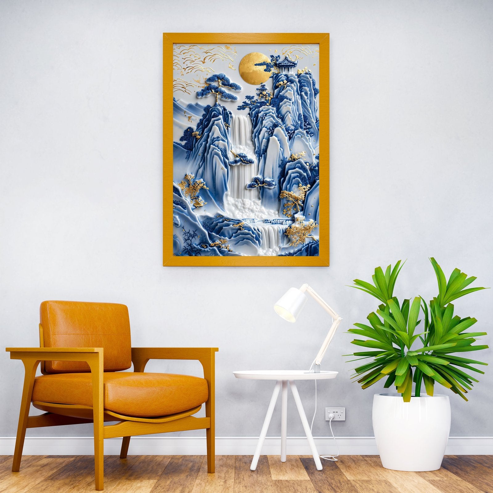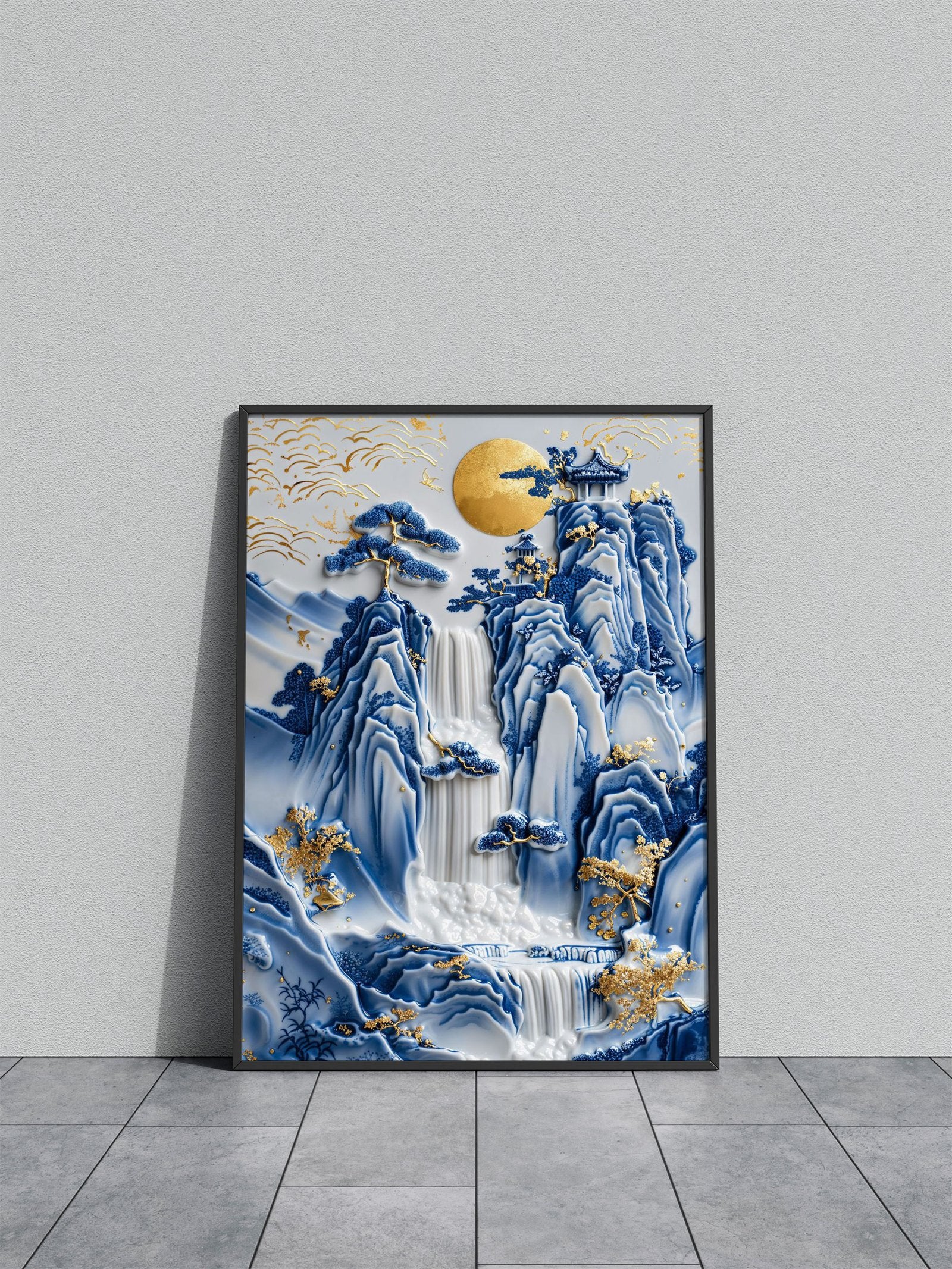 Porcelain Waterfall Temple Asian Style Poster | Wall Art for Home & Office | High-Quality Print