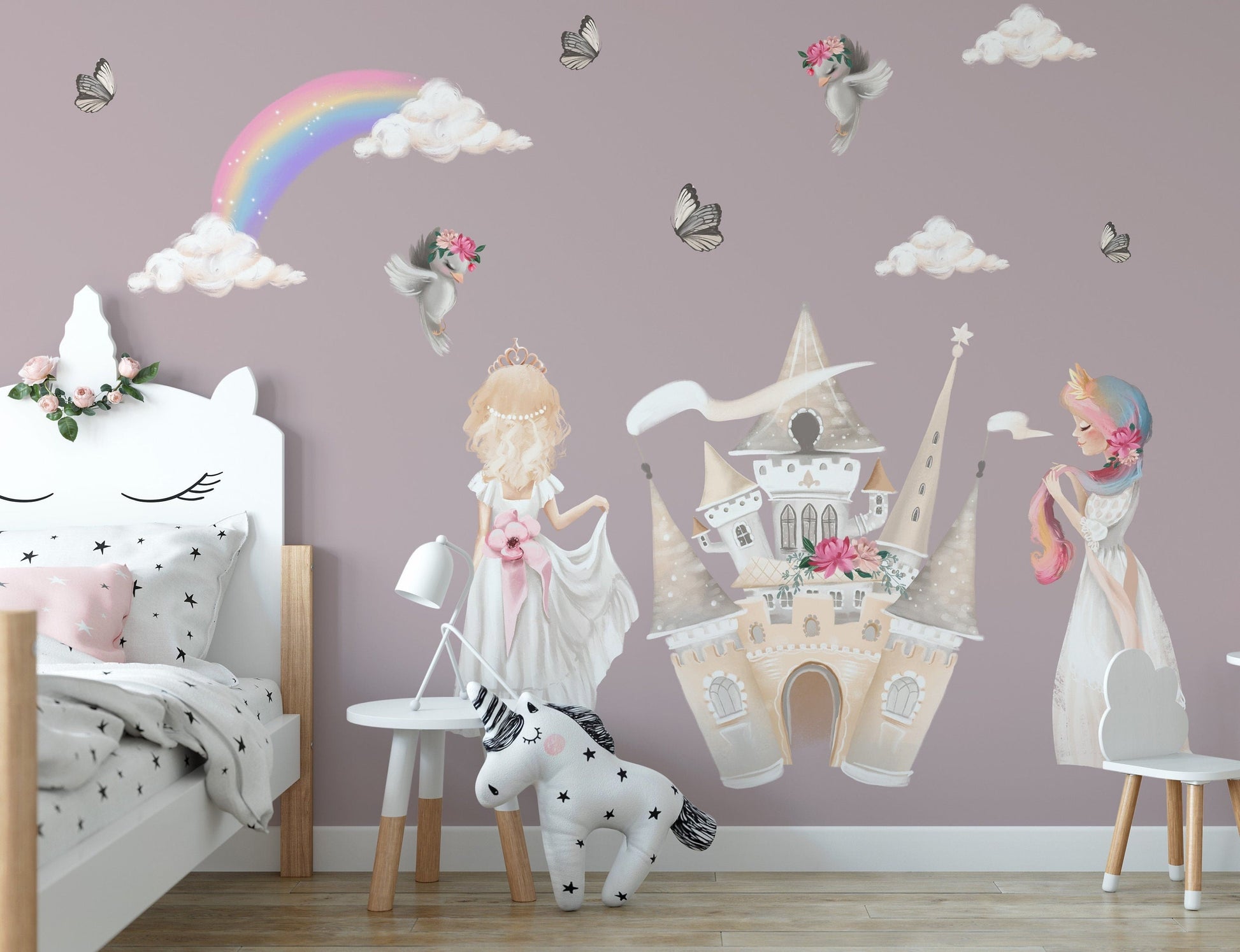Beautiful and gentle princess wall stickers featuring soft pastel watercolour ballerinas, flowers and animals is the perfect addition to a baby girl's bedroom. Soft watercolour colours add the gentle touch and give a calming and warm feeling.