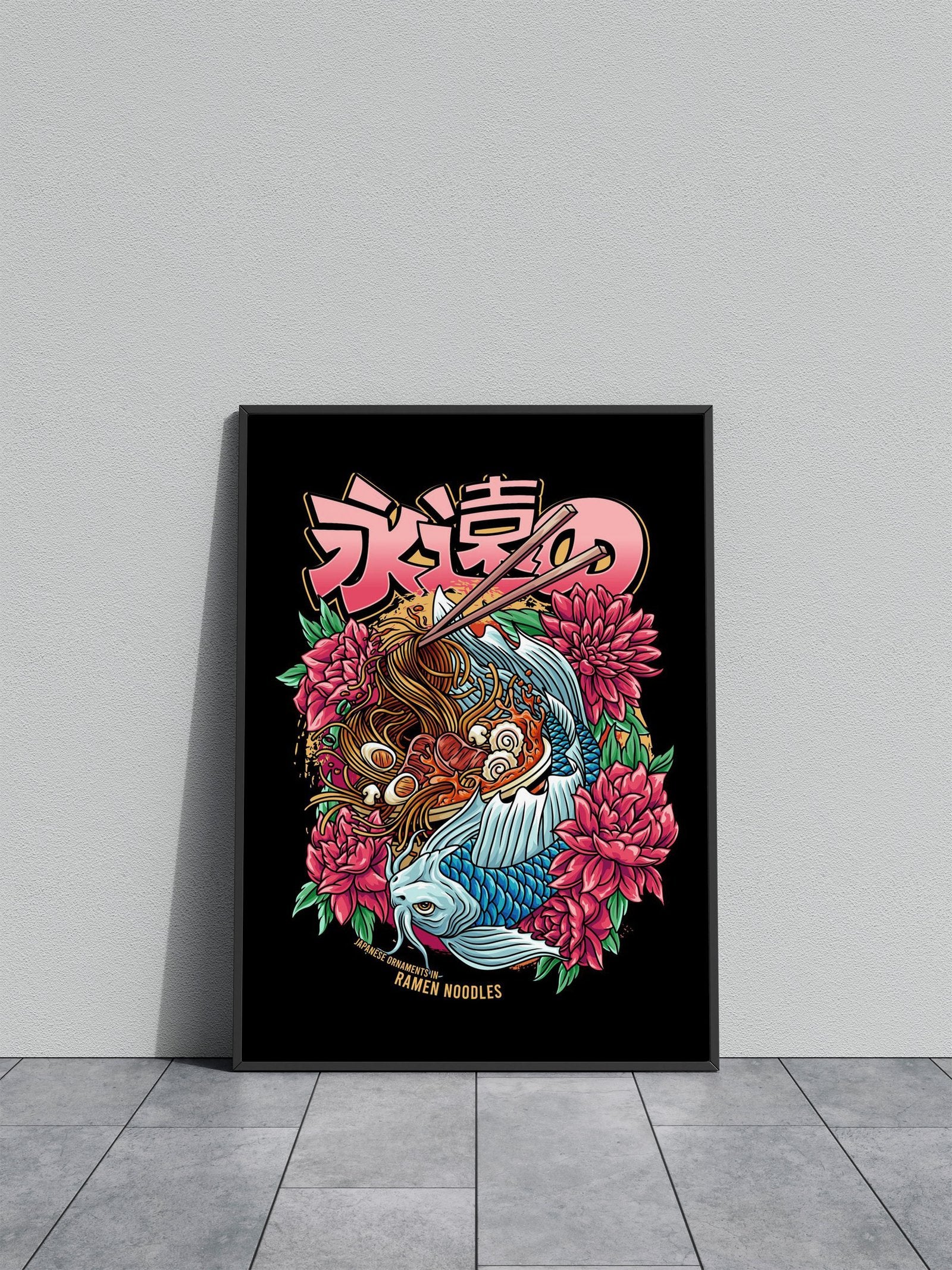 Ramen Koi With Text Asian Style Poster | Artistic Unframed Wall Art Print Featuring Koi & Typography | High-Quality Decor | Multiple Sizes Available