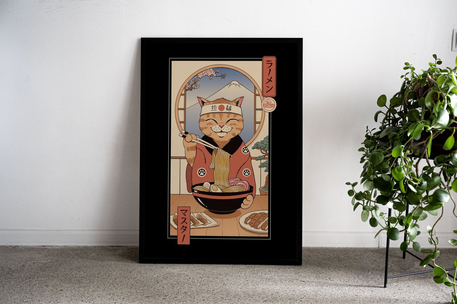Ramen Meowster Asian Style Poster | Cute Cat-Themed Unframed Wall Art Print for Kitchen, Home & Office | High-Quality | Multiple Sizes Available