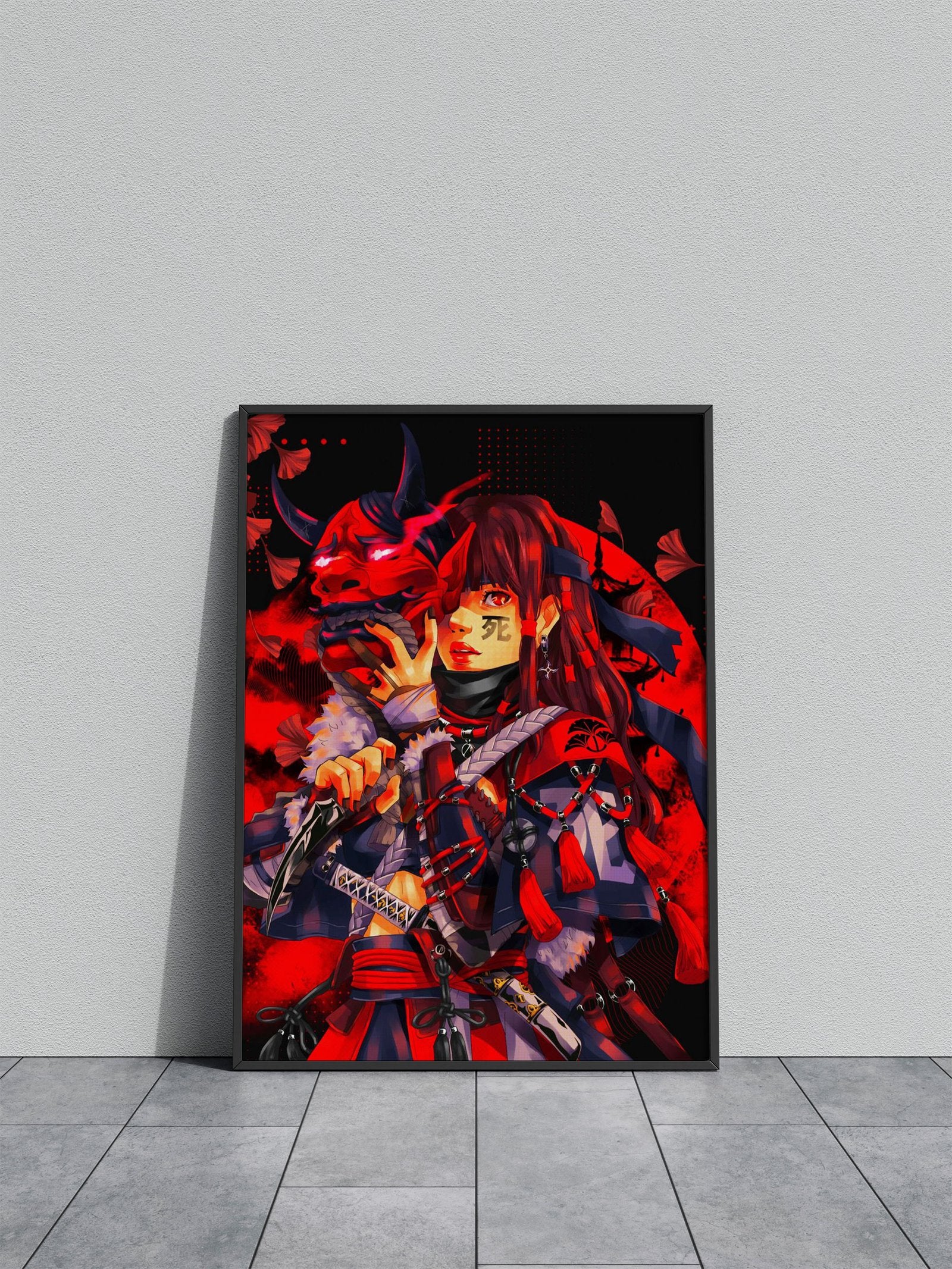 Red Girl Samurai Japan Asian Style Poster | Wall Art for Home & Office | High-Quality Print