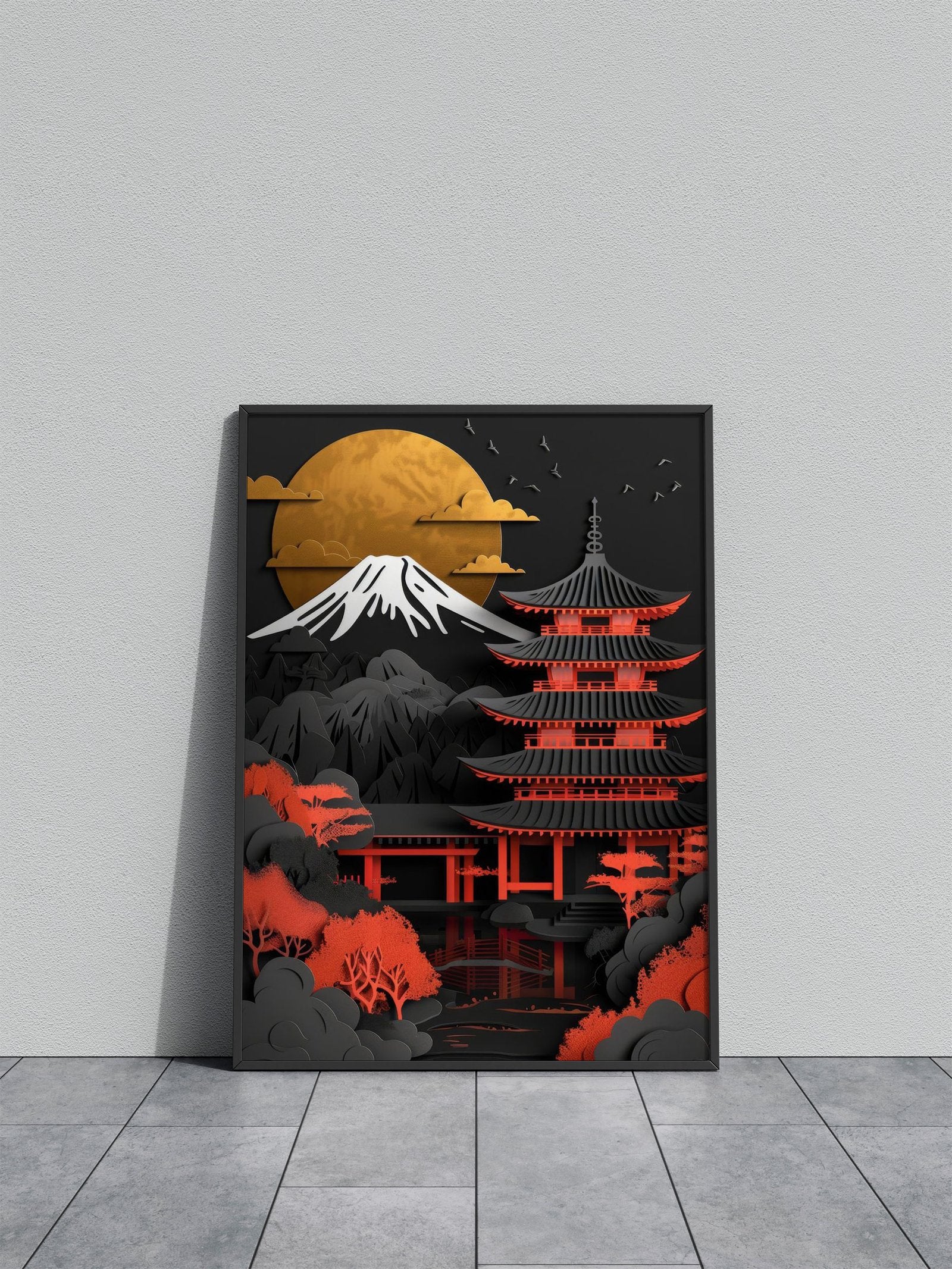 Red Gold Black Japan Asian Style Poster | Striking Unframed Wall Art Print for Home & Office | Premium Quality | Multiple Sizes Available