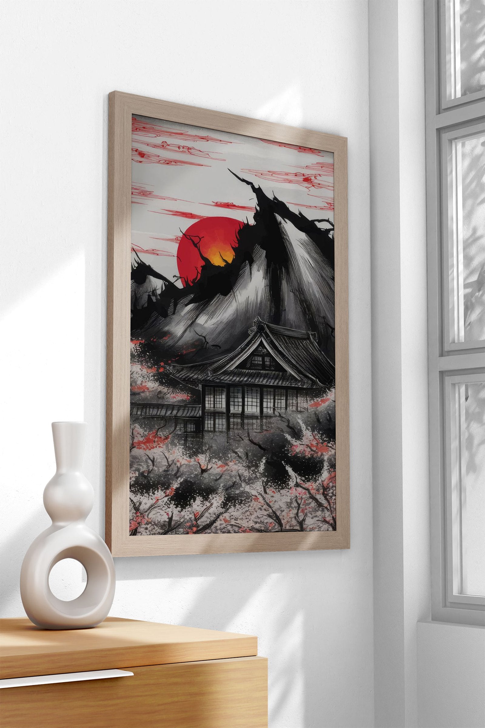 Red Japan Mountain Blossom Asian Style Poster | Wall Art for Home & Office | High-Quality Print