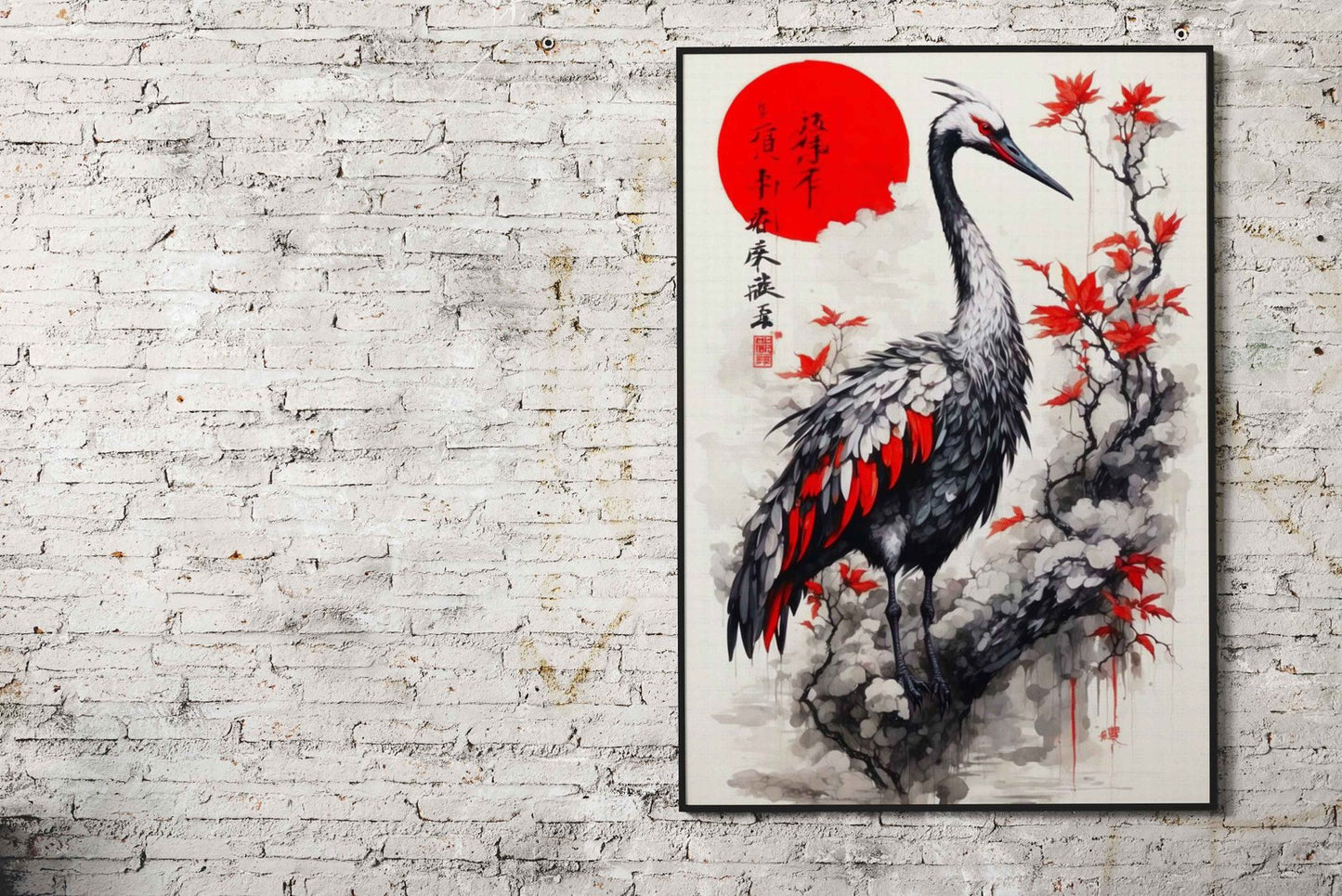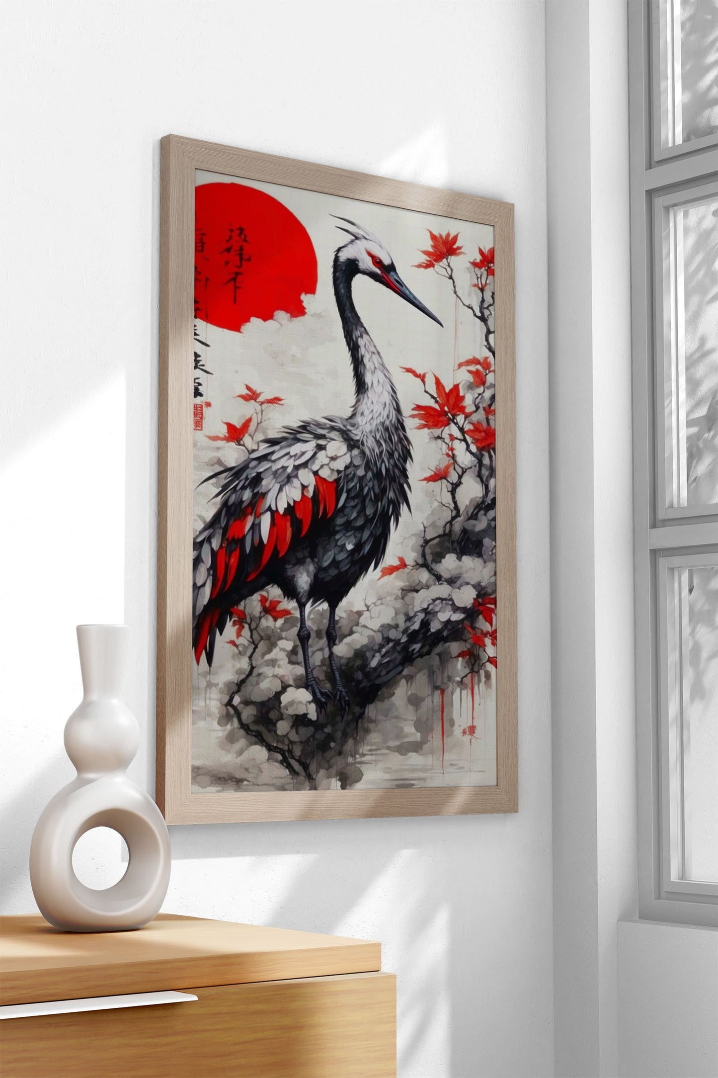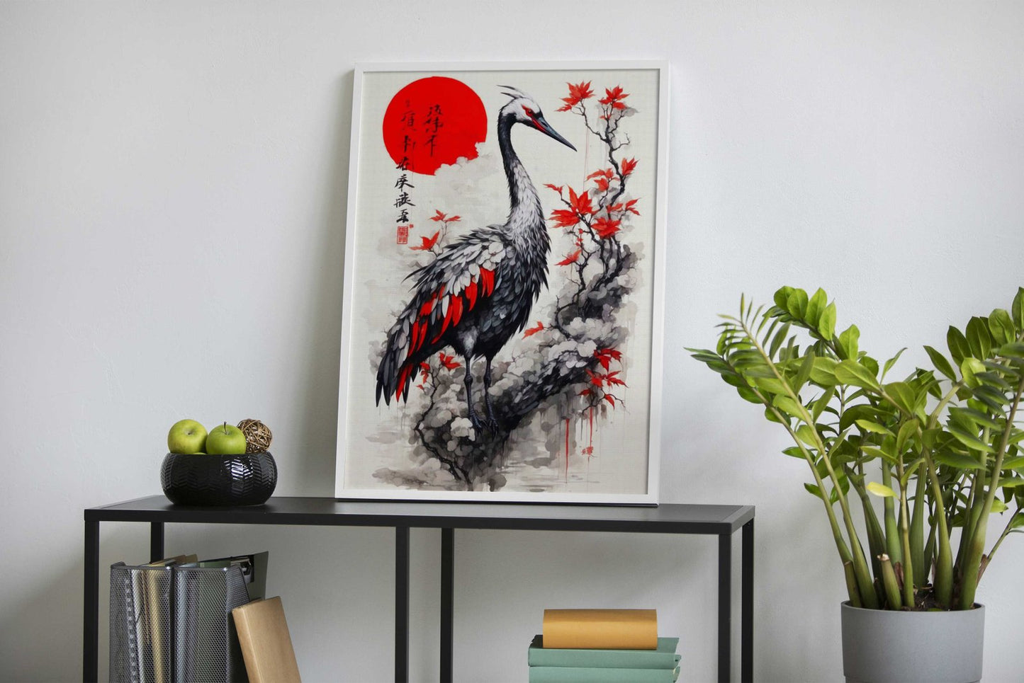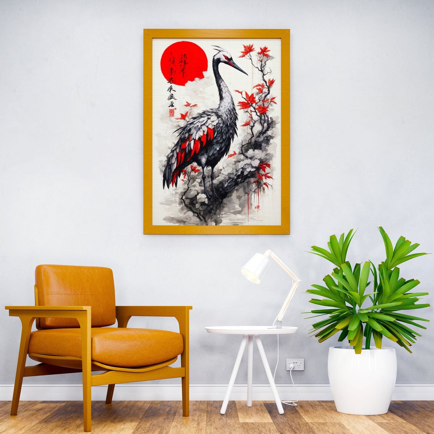 Red Moon Flamingo Asian Style Poster | High-Quality Wall Art Print | Elegant Home & Office Decor | Unframed | Multiple Sizes Available