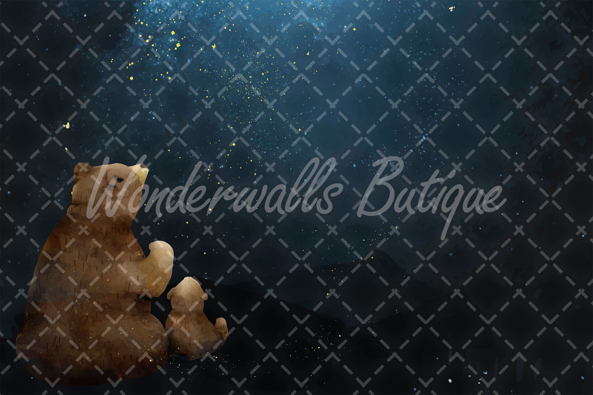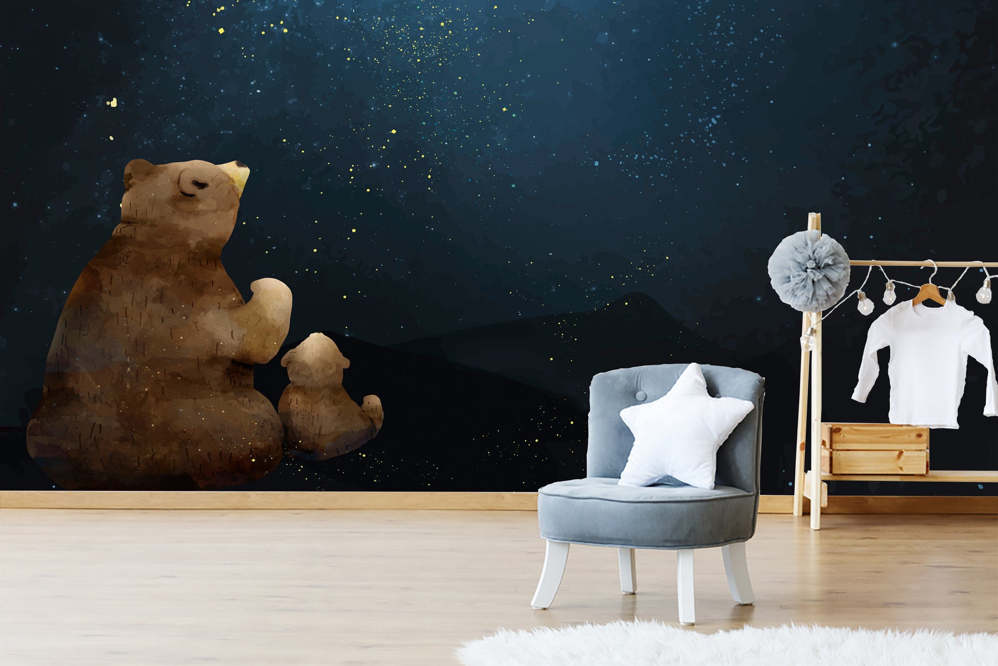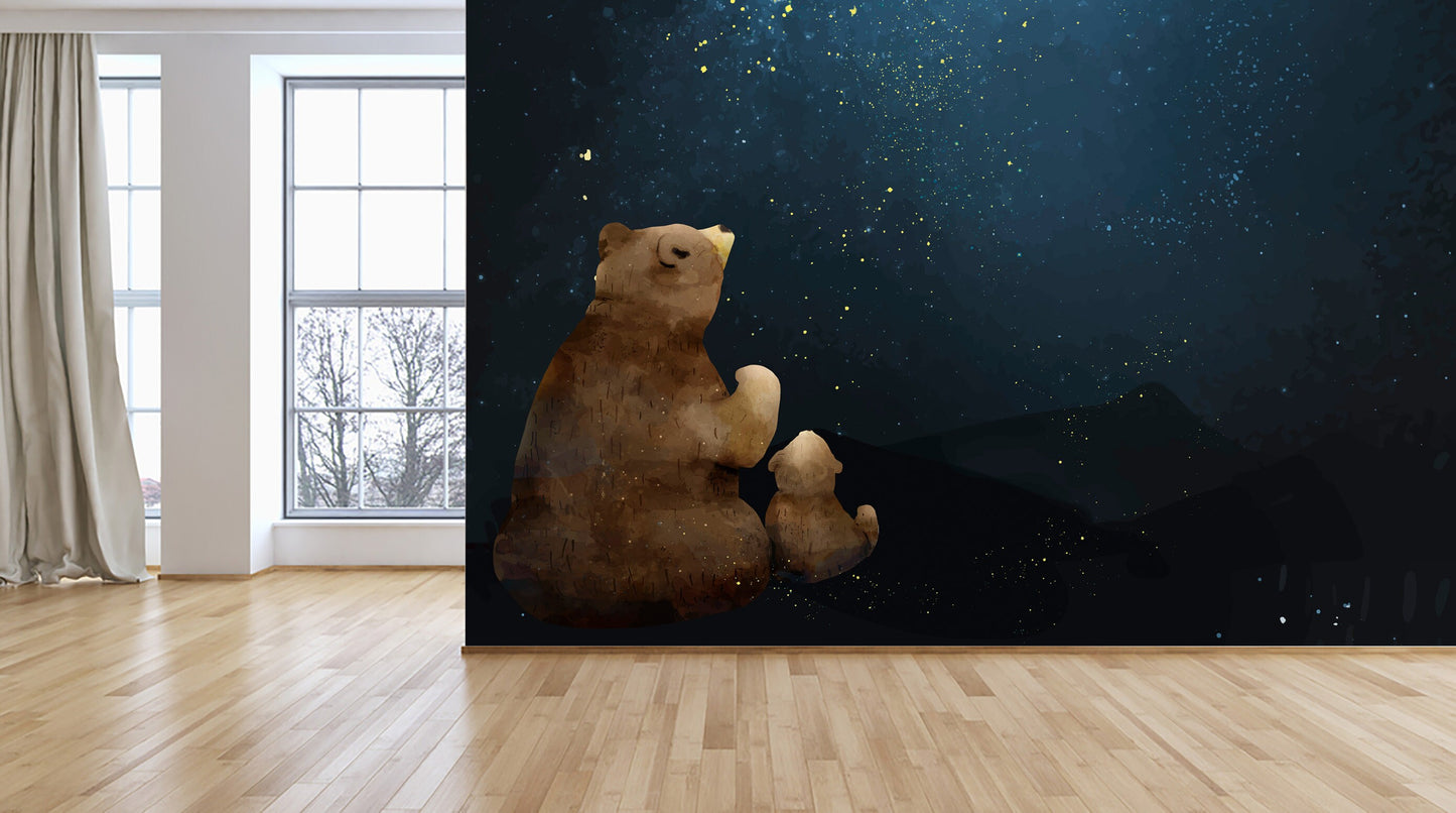 Self Adhesive Peel and Stick Kids Wallpaper Removable Father and son bear watching the galaxy