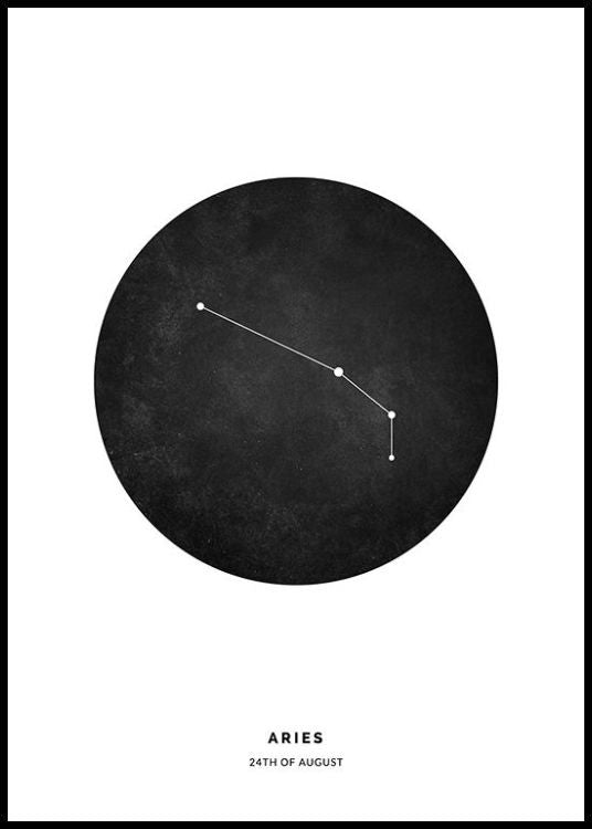 - Illustration with the Aries zodiac sign in a black circle on a white background Illustration of the Aries zodiac sign in a black circle, against a white background with black text underneath. Personalised print where you can customise your very own design! Printed to order. Please note that it is not possible to return a personalised poster.