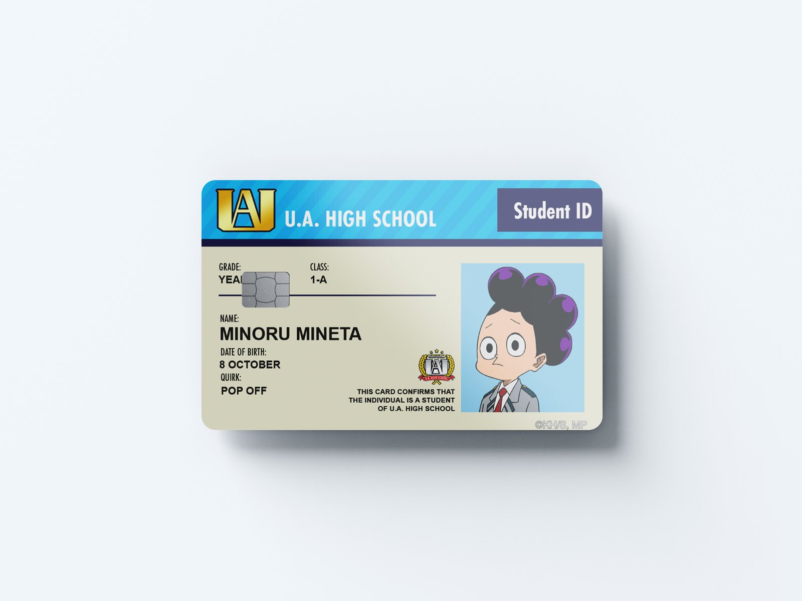 Student ID Minoru Mineta Design | Credit Card Sticker | Small Chip | Credit Card Skin