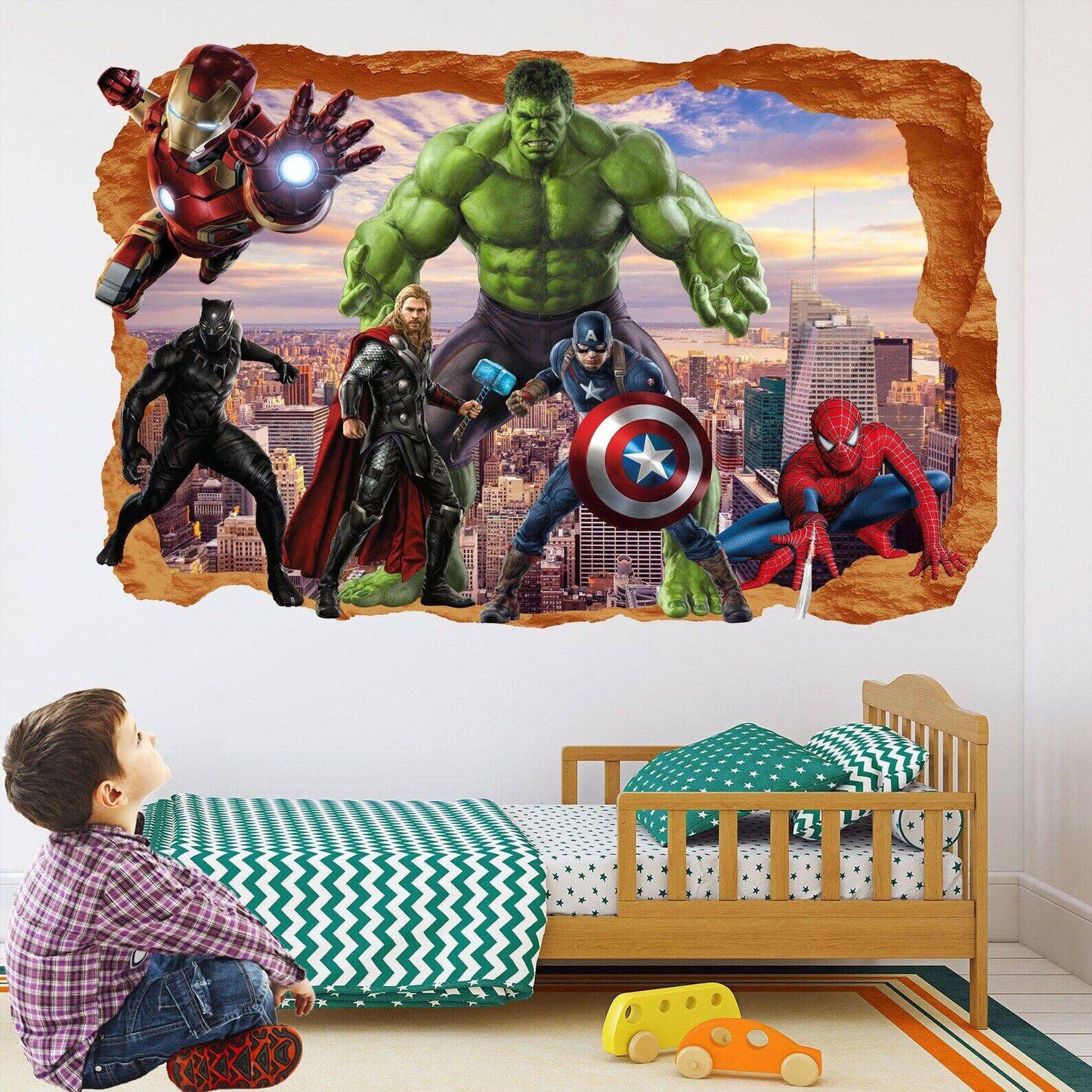 Superhero Art Prints: Spiderman, Iron Man, Hulk, Captain America, Thor Decals