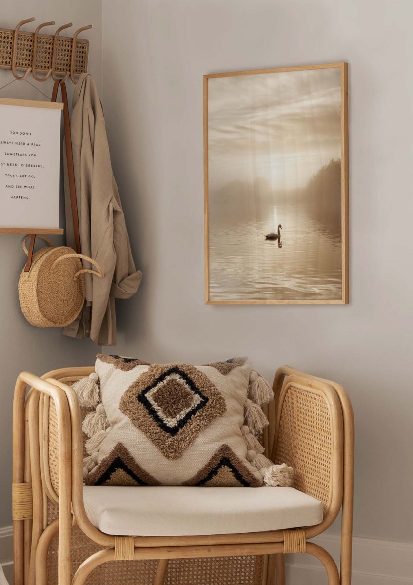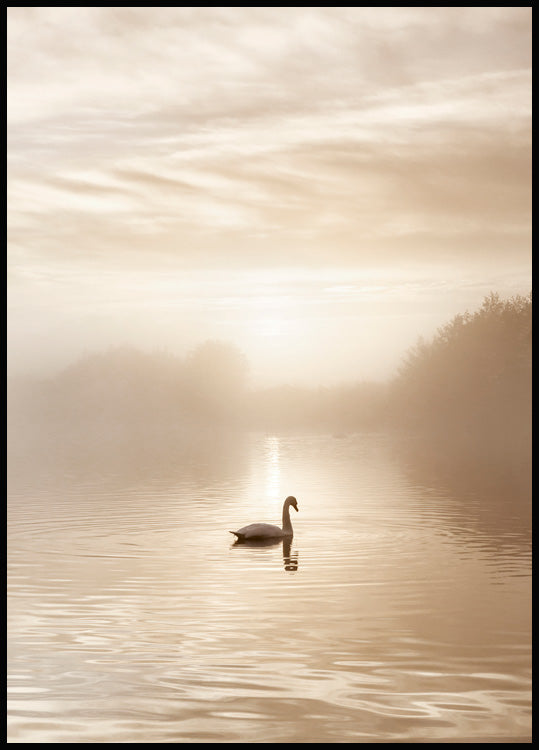 Photograph of a swan in the lake with serene beige colour. A magnificent eye-catching print that will be a great addition to a modern and trendy home.