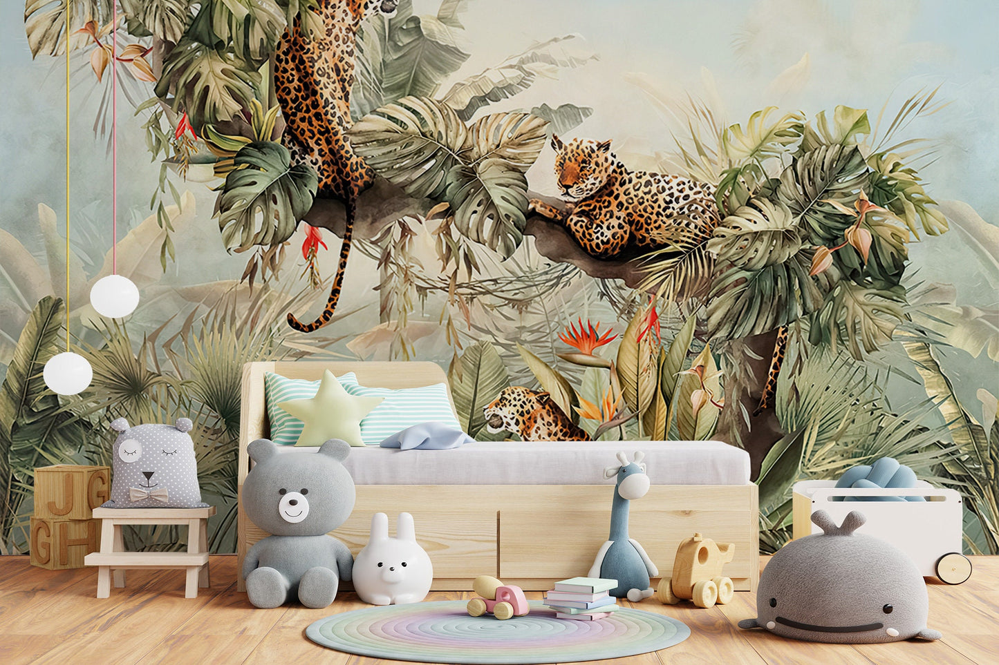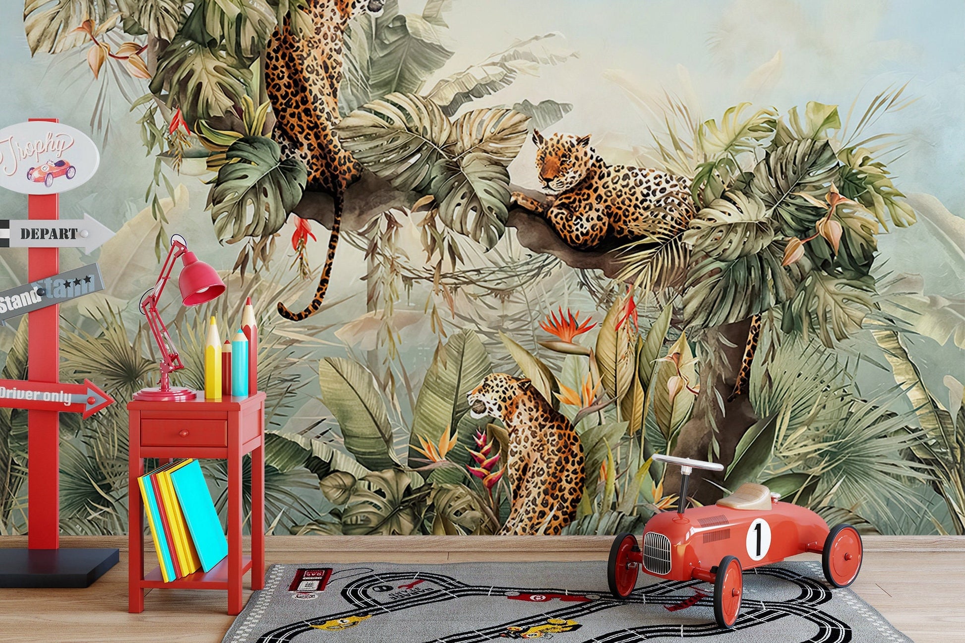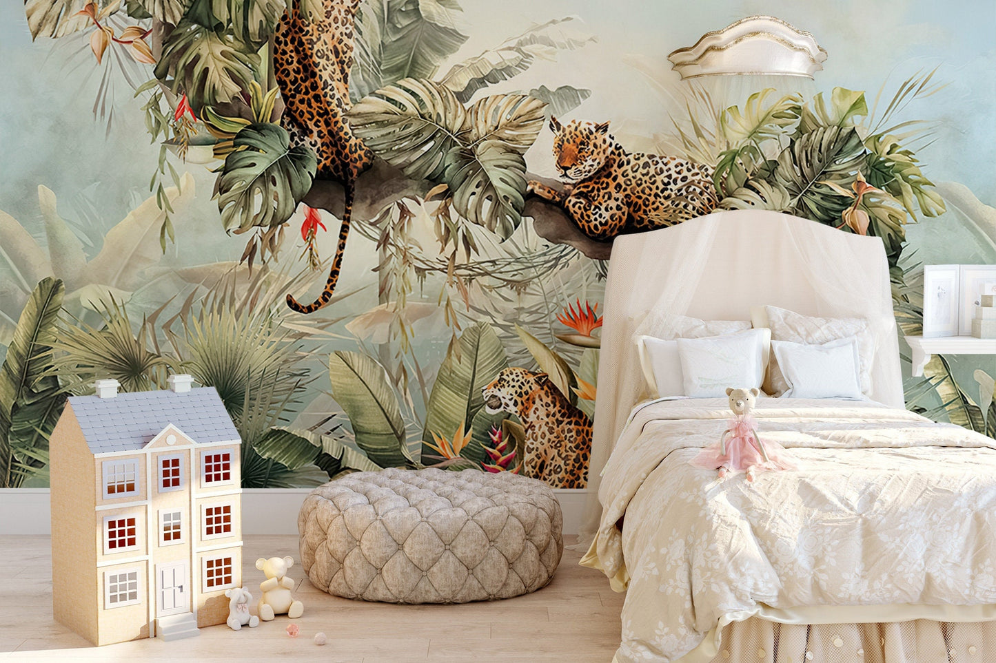 Tigers In The Jungle Wallpaper, Wall Mural, Peel and Stick, Self Adhesive, Wall Covering by Bella Stampa Studio