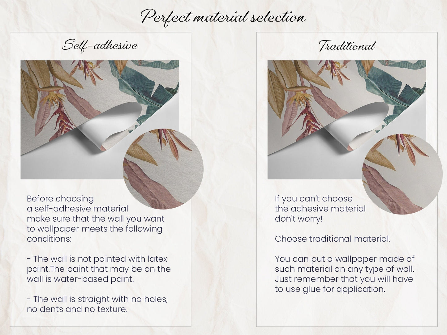 Smooth – Peel and Stick – Our popular removable wallpaper material is PVC with adhesive on the back, suitable for smooth walls.