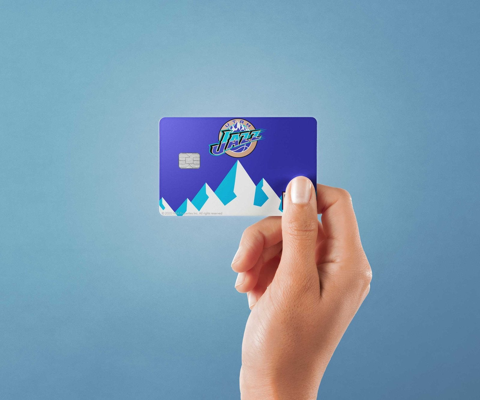 Utah Jazz Away Warmups Hardwood Classics Design | Credit Card Sticker | Small Chip | Credit Card Skin