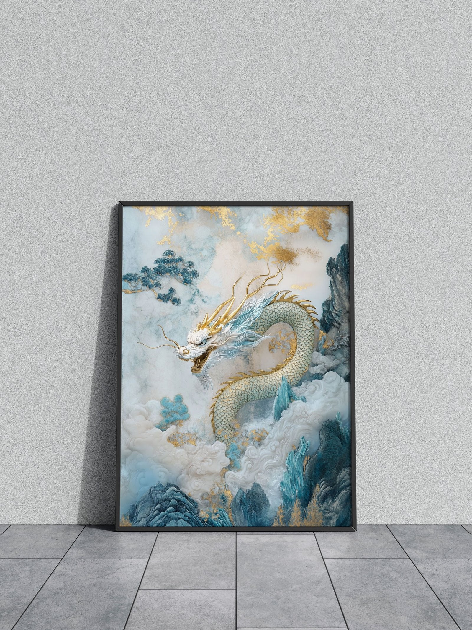 White Dragon in Clouds Asian Style Poster | Wall Art for Home & Office | High-Quality Print