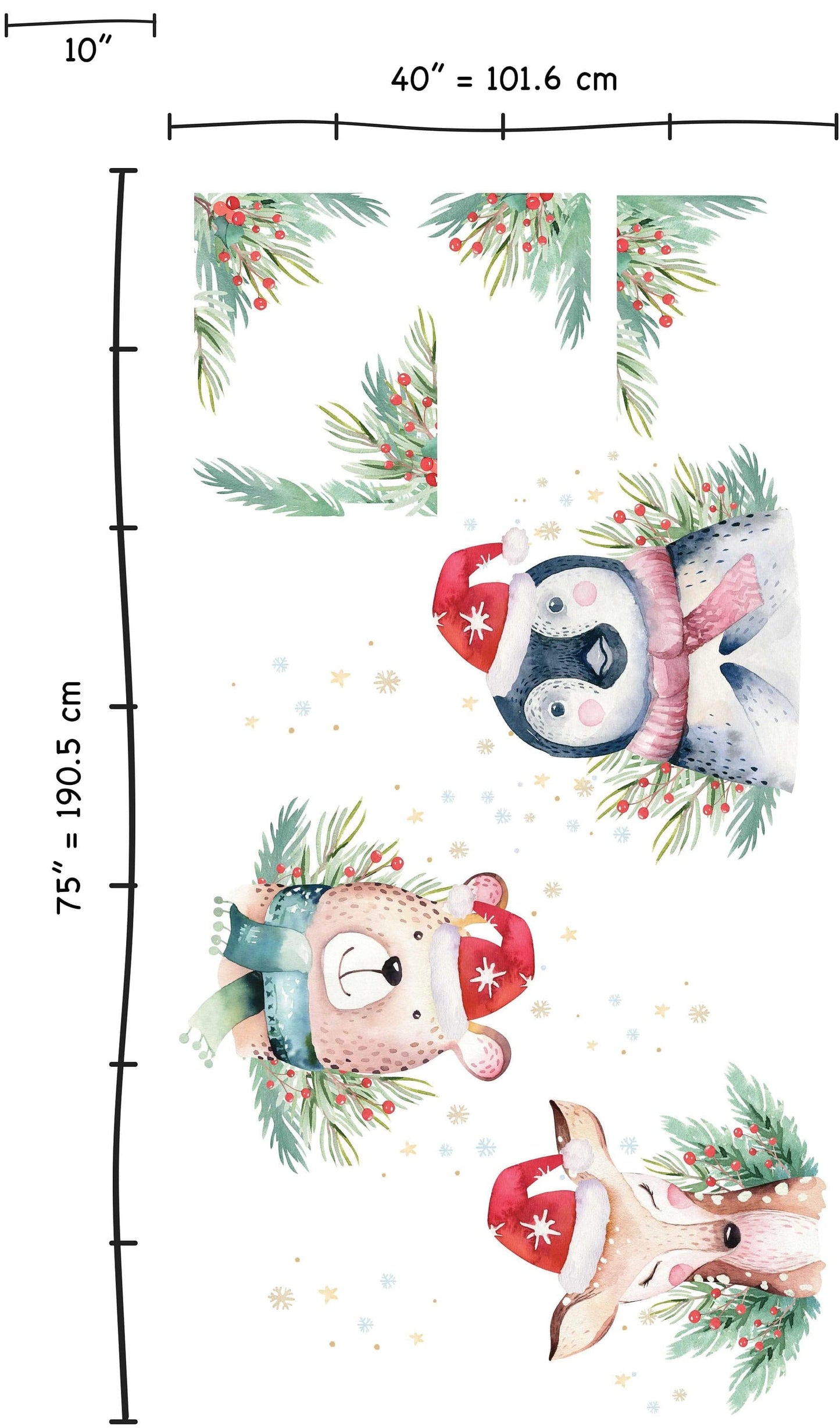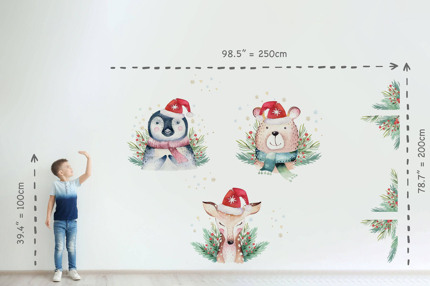 Winter Forest Wall Decal, Watercolor Deer Wall Decal, Snowy Tree Sticker, Nursery Forest Wall Decal, Pine Tree Wall Decal, Watercolor Animal